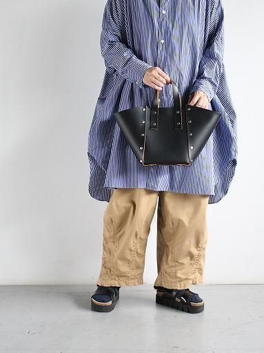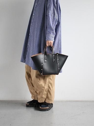 裁断したカウレザーを ステッチを用いることなく あえてスタッズのみで組み上げた アッセンブルシリーズ コチラでご紹介するのは ワイドなハンドバッグです レザーにハリがあるので とてもきれいなカタチに仕上がっています ちなみにバッグの入口には マグネットボタンを施しています 無骨さと洗練さが 共存したような佇まいが魅力です SIZE W410 × H220 × D80 ※1 サイズ計測の多少の誤差はご了承下さいませ ※2 革製品につき 多少のムラやキズが見られる場合がございます ※3 着用画像は 160cm の女性です cow Leather made in Japan ![]() ![]() ![]() ![]() ![]() ![]() ![]() col.copper orange ![]() col.steel grey ![]() col.black ![]() col.pistachio 実物の色合いと異なる場合がございますので 何卒ご了承下さいませ 無断での複写・転載はご遠慮くださいませ ![]() ※ サイズ計測の多少の誤差はご了承下さいませ ![]() ![]()