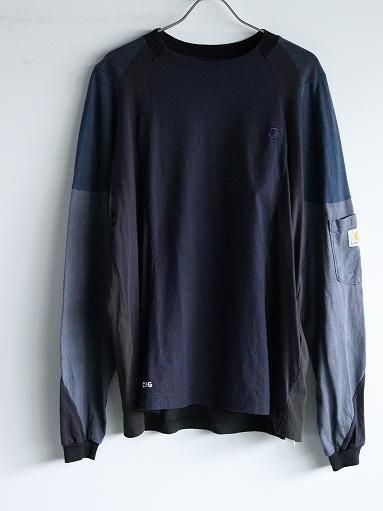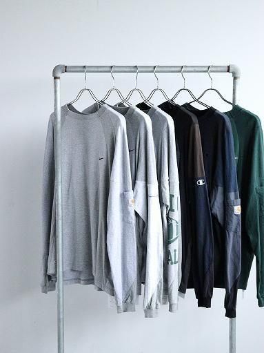 "CHANGE FORWARD SOME THINGS WILL NEVER CHANGES" 「変わり続ける しかし 決して変わらない事もある」 そんなコンセプトのもとに 様々な古き良き洋服や資材を再構築した リメイクウェアを提案する CHANGES (チェンジーズ) より素晴らしい完成度の リメイクロングTシャツが届きました アウトドアやスポーツブランドから ワークやトラッドな銘柄まで 古き良きアメリカやヨーロッパを感じる ユーズドTシャツを3枚解体し 現代の天竺と組み合わせて再構築し 新たなカットソーへと昇華させています スポーツ用のゲームシャツのような デザインとカッティングに落とし込んでいます 全体的にゆとりを持たせた リラックス感のあるシルエットバランスですが 湾曲した切り替えのバランスが絶妙なので とても雰囲気の良い仕上がりです シンプルに着合わせるだけで カッコよく纏まるというか 垣根と時代を超え 配置されたロゴやプリントの シンクロ感が素晴らしい ロングTシャツです そんなこんなで 1点1点異なる表情を お楽しみいただければと CH1066 SIZE SPEC (cm) TYPE A / ONE SIZE 身幅60.0 着丈74.0 裄丈95.0 TYPE B / ONE SIZE 身幅60.0 着丈74.0 裄丈95.0 TYPE C / ONE SIZE 身幅60.0 着丈72.0 裄丈94.0 TYPE D / ONE SIZE 身幅60.0 着丈73.0 裄丈95.0 TYPE E / ONE SIZE 身幅59.0 着丈74.0 裄丈94.0 TYPE F / ONE SIZE 身幅58.0 着丈74.0 裄丈93.0 TYPE G / ONE SIZE 身幅61.0 着丈73.0 裄丈92.0 TYPE H / ONE SIZE 身幅59.0 着丈74.0 裄丈94.5 ※1 サイズ計測の多少の誤差はご了承下さいませ ※2 古い資材を使用したリメイク商品のため アタリやダメージ リペア跡などは一点一点の個性と風合いとしてご了承ください ※3 着用画像は 171cm 60kg の男性です (※ TYPE A , TYPE G を着用) remade in Japan    ※171cm 60kg の男性が「 TYPE A 」を着用しています  ※171cm 60kg の男性が「 TYPE A 」を着用しています  ※171cm 60kg の男性が「 TYPE A 」を着用しています  ※171cm 60kg の男性が「 TYPE A 」を着用しています  ※171cm 60kg の男性が「 TYPE G 」を着用しています  ※171cm 60kg の男性が「 TYPE G 」を着用しています  ※171cm 60kg の男性が「 TYPE G 」を着用しています  ※171cm 60kg の男性が「 TYPE G 」を着用しています     TYPE A 身幅60.0 着丈74.0 裄丈95.0     TYPE B 身幅60.0 着丈74.0 裄丈95.0     TYPE C 身幅60.0 着丈72.0 裄丈94.0     TYPE E 身幅59.0 着丈74.0 裄丈94.0     TYPE F 身幅58.0 着丈74.0 裄丈93.0     TYPE G 身幅61.0 着丈73.0 裄丈92.0   実物の色合いと異なる場合がございますので 何卒ご了承下さいませ 無断での複写・転載はご遠慮くださいませ  ※ サイズ計測の多少の誤差はご了承下さいませ
