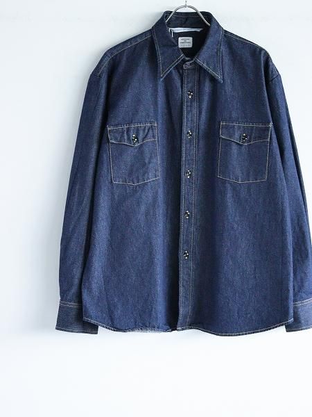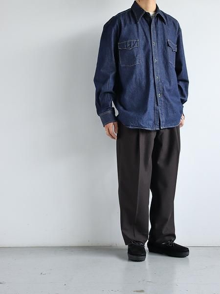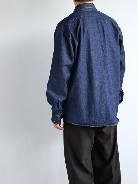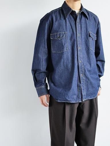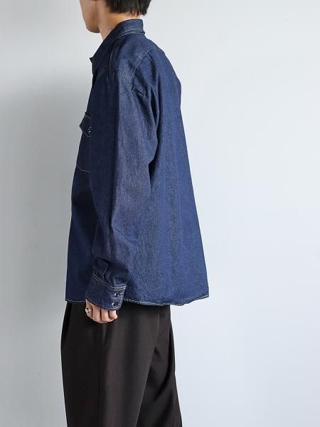 ならではな独自性に 機能性や遊び心を感じるシャツ ファブリックは コットン100%の 適度なハリのある 着心地良いデニム素材です カラーキーパーの入った襟や アームホールから脇線部分の インターロックを用いた簡易縫製は 従来のままに 両側のフラップポケットを中心からずらす事で より力の抜けた印象に仕上げています そしてシルエットは 身巾や着丈に程よい緩さを持たせ リラックス感のあるフォルムに纏めています ディティールの足し引きのバランス感に ならではを感じるシャツです 90012201 SIZE SPEC (cm) SIZE M 身幅63.0 肩幅51.5 着丈75.5 袖丈62.0 SIZE L 身幅64.0 肩幅53.0 着丈77.0 袖丈63.0 ※1 サイズ計測の多少の誤差はご了承下さいませ ※2 165cm 50kgの男性で size M を着用しております ※3 171cm 60kgの男性(着用画像)で size M を着用しております ※4 174cm 68kgの男性でsize M または size L を着用しております ※5 180cm 70kgの男性で size L を着用しております Cotton 100% made in Japan ![]() ![]() ![]() ![]() ![]() ![]() ![]() ![]() 実物の色合いと異なる場合がございますので 何卒ご了承下さいませ 無断での複写・転載はご遠慮くださいませ ![]() ※ サイズ計測の多少の誤差はご了承下さいませ ![]() ![]()