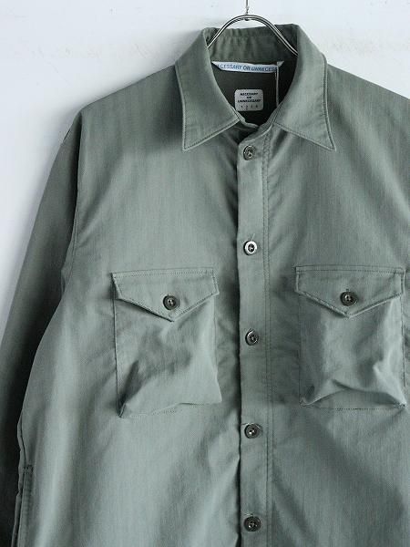 NECESSARY or UNNECESSARY(N.O.UN.) らしさを感じるディティールと素材使いの ミリタリーなシャツジャケットが届きました ファブリックは一見 コットンのようですが 軽量でシワになりにくくて 速乾性のあるポリエステル糸で織られたヘリンボーン ミリタリーなデザインで フロントジップの仕様と 立体的なマチ付きポケットが印象的です カタチはボックスシルエットで ゆったりとしていますが 着丈が整えられた バランスよいフォルムです 軽量で着心地よく 開け羽織ったときの雰囲気もカッコいい シャツジャケット「WATCH SHIRT」 いろんな着方ができて 汎用性の高い一枚かと 90012203 SIZE SPEC (cm) SIZE M 身幅60.0 肩幅49.0 着丈70.0 袖丈63.0 SIZE L 身幅62.0 肩幅50.0 着丈72.0 袖丈63.5 ※1 サイズ計測の多少の誤差はご了承下さいませ ※2 165cm 50kgの男性で size M を着用しております ※3 171cm 60kgの男性(着用画像)で size M を着用しております ※4 174cm 68kgの男性でsize M または size L を着用しております ※5 180cm 70kgの男性で size L を着用しております Polyester 100% made in Japan ![]() ![]() ![]() ![]() ![]() ![]() ![]() ![]() ![]() ![]() ![]() ![]() ![]() 実物の色合いと異なる場合がございますので 何卒ご了承下さいませ 無断での複写・転載はご遠慮くださいませ ![]() ※ サイズ計測の多少の誤差はご了承下さいませ ![]() ![]()