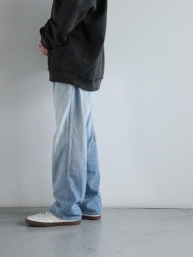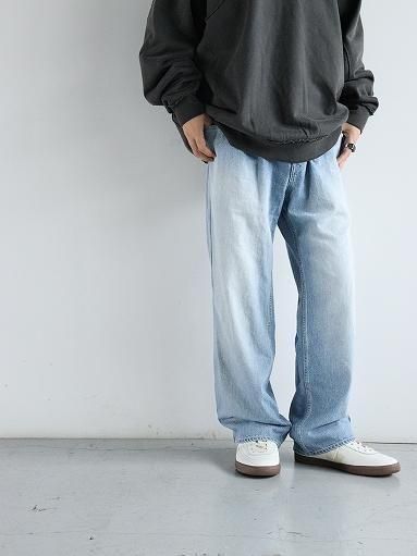 「PERS PROJECTS」 PERSPECTIVE 「見通し 遠近法 完成予想図」 PERSONALITY 「個性」 それぞれの意味合いを掛け合わせて表現され 着る人の 思考 感性 生活様式 を際立たせ 個性を拡張するプロジェクト 上質な素材感と 無駄なものをすべてそぎ落とした ミニマルなデザインで 着るたびに奥行きや深さを感じられる そんな服を創り出していく銘柄です 今回ご紹介するのは ARON BEZ 5P JEANS "vintage wash" ファブリックはムラ糸を使い 経と横の糸の太さを変えることで ミドルオンスでありながらフラットにならず 奥行のある印象に仕上がったデニム そんなデニムを 素晴らしい技術を持つ児島の職人さんが 1点ずつ加工を施して仕上げています オーセンティックな5ポケットのフロントに タックを施しアクセントを付け 腰回りにゆとりを持たせていたり 後ろのウェストはイージー仕様だったり 穿き心地良い仕上がりです シルエットは 膝から裾にかけてストレートに形成して 膝下にボリュームが出るように仕上げられています 5ポケットデニムのようでありながら ペインターな仕様が絶妙なデニムパンツ リラックスな穿き心地ですが 綺麗な印象に纏まっているので 同素材のカバーオールとのセットアップも バランスよい容姿に纏まります 25FW-16092VW SIZE SPEC (cm) SIZE 1 ウエスト70.0~80.0 わたり幅32.0 裾幅22.0 股上29.0 股下70.0 総丈97.0 SIZE 2 ウエスト74.0~84.0 わたり幅32.5 裾幅23.0 股上30.0 股下71.0 総丈99.0 SIZE 3 ウエスト78.0~88.0 わたり幅33.0 裾幅24.0 股上31.0 股下73.0 総丈101.0 ※1 サイズ計測の多少の誤差はご了承下さいませ ※2 165cm 52kgの男性で size 1 を着用 ※3 170cm 60kgの男性(着用画像)でsize 1 または size 2 を着用 (※着用画像は size 2 を着用しています) ※4 174cm 68kgの男性で size 2 を着用 ※5 180cm 70kgの男性で size 3 を着用 Cotton 100% made in Japan ![]() ![]() ![]() ![]() ![]() ![]() ![]() ![]() ![]() 実物の色合いと異なる場合がございますので 何卒ご了承下さいませ 無断での複写・転載はご遠慮くださいませ ![]() ※ サイズ計測の多少の誤差はご了承下さいませ ![]() ![]()