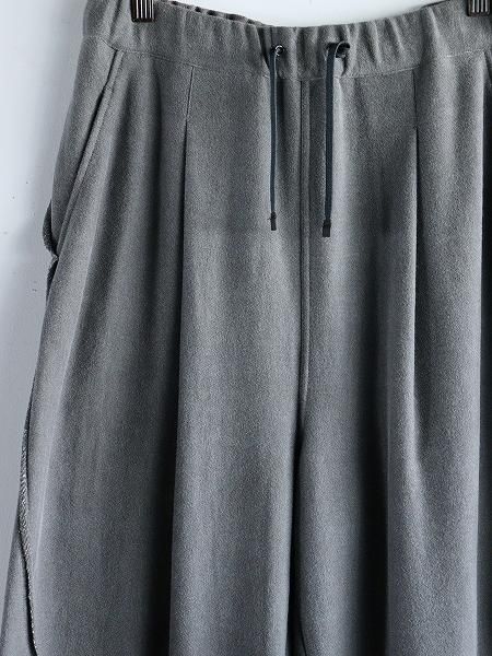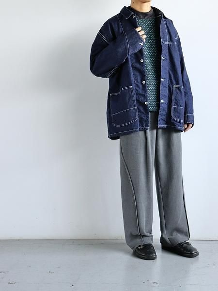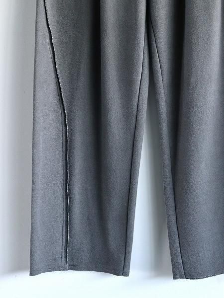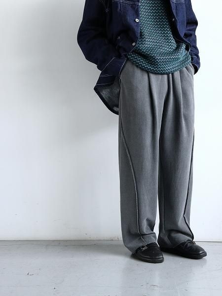 「PERS PROJECTS」 PERSPECTIVE 「見通し 遠近法 完成予想図」 PERSONALITY 「個性」 それぞれの意味合いを掛け合わせて表現され 着る人の 思考 感性 生活様式 を際立たせ 個性を拡張するプロジェクト 上質な素材感と 無駄なものをすべてそぎ落とした ミニマルなデザインで 着るたびに奥行きや深さを感じられる そんな服を創り出していく銘柄です 今回ご紹介するのは HAKEEM TWIST TROUSERS ファブリックは COTTON100%の裏毛素材 生地の段階で褪せた色合いに染めて 穿き始めからヴィンテージな雰囲気になるように 仕上げられたスウェット 自然と前へと巻いてくるように 生地を通常とは逆の方向に裁断して 捻じれるような ゆとりあるフォルムを表現しています ウエストはイージー仕様で 脇のシームは前に流れるような裁ち切りだったり 後ろには大きめのフラップポケットが施されていたり 存在感ある容姿に纏められています 少しゆったりとしたシルエットは 裾にかけて綺麗に落とした 立体的なストレートに形成されています トラウザーとスウェットパンツの間のような 絶妙なバランスに仕上げられた スウェットパンツ リラックスな穿き心地ですが ジャケットやニットにもバランス良いようです 25FW-23081VT SIZE SPEC (cm) SIZE 1 ウエスト70.0~82.0 わたり幅33.0 裾幅23.0 股上36.0 股下69.0 総丈103.0 SIZE 2 ウエスト74.0~86.0 わたり幅34.0 裾幅24.0 股上37.0 股下71.0 総丈107.0 SIZE 3 ウエスト78.0~90.0 わたり幅35.0 裾幅25.0 股上38.0 股下73.0 総丈110.0 ※1 サイズ計測の多少の誤差はご了承下さいませ ※2 165cm 50kgの男性で size 1 を着用 ※3 171cm 60kgの男性(着用画像)でsize 1 または size 2 を着用 (※着用画像は size 2 を着用しています) ※4 174cm 68kgの男性で size 2 を着用 ※5 180cm 70kgの男性で size 3 を着用 Cotton 100% made in Japan ![]() ![]() ![]() ![]() ![]() ![]() ![]() ![]() ![]() ![]() 実物の色合いと異なる場合がございますので 何卒ご了承下さいませ 無断での複写・転載はご遠慮くださいませ ![]() ※ サイズ計測の多少の誤差はご了承下さいませ ![]() ![]()