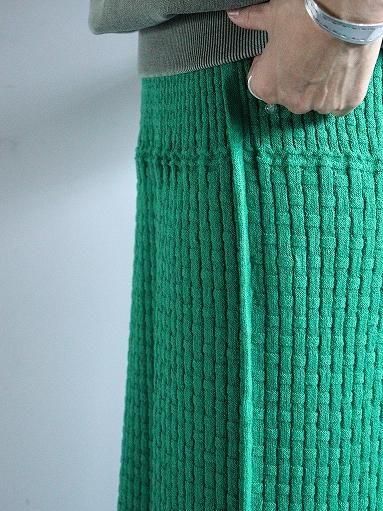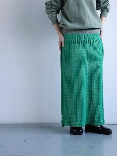 ONICA 日常の心象的な事柄をものづくりに投影し 後世まで大切にしてもらえるような 「思いが残る」衣服を製作 デザイナーさんは フィンランドの大学院ファッションデザイン科を修了し フィンランドで人々の生活に根付いているニットと出会い デザインから素材選定・編み組織・纏い方までを 一貫して行うニットならではの工程に魅了され すべての過程に丁寧に向き合いながら アーティスティックなモノ創りをされています 今回届いたニットは Cotton-boucle Basket Skirt story -綿毛をまとう- 変わってゆくものと 変ったものと 変らなかったもの 籠の模様をイメージした立体的な編み柄を ホールガーメント機で編み立てたスカート 素材は綿混のブークレーで ふっくらとした表面感が雰囲気良く 肌当たり軽くサラッとした風合いです ウェストはビックリするほど伸縮があったり タック編みをたくさん作って フォルムがぴったりしすぎず ゆとりを持ったシルエットになるよう 計算して形成されています サイドは生地のミミのように施されていたり 裾はメロウな表情だったり 動きのある見映えが絶妙な仕上がりです また裾中心のスリットは 前後お好きな方で穿いていただけます ホールガーメントでしかできないデザインで シルエットを綺麗に整えた ニットならではなスカート 単色でも奥行きある表情なので シンプルに着ても モノ足りなさを感じない バスケット柄を想うニットスカートです Oni 052 SIZE SPEC (cm) SIZE ONE 巾53.0 丈90.0 ※1 サイズ計測の多少の誤差はご了承下さいませ ※2 160cm の女性(着用画像)で size ONE を着用 Cotton 70% Nylon 30% made in Japan ![]() ![]() ![]() ![]() ![]() ![]() ![]() ![]() ![]() ![]() col.L.Beige ![]() col.Green ![]() ![]() ![]() 実物の色合いと異なる場合がございますので 何卒ご了承下さいませ 無断での複写・転載はご遠慮くださいませ ![]() ※ サイズ計測の多少の誤差はご了承下さいませ ![]() ![]()