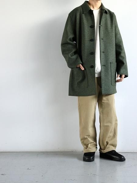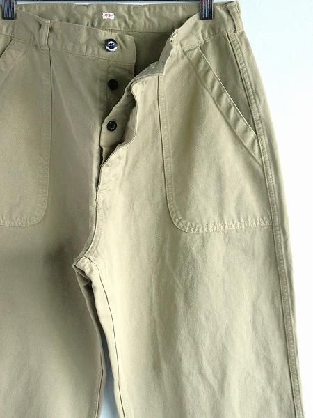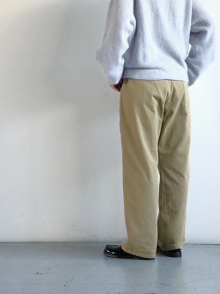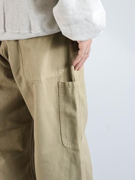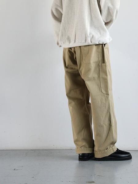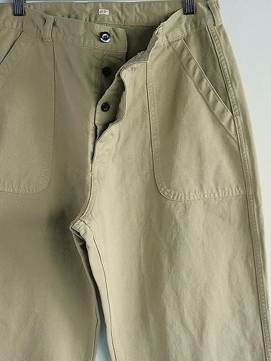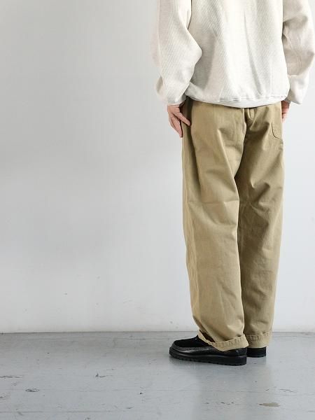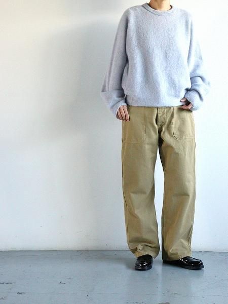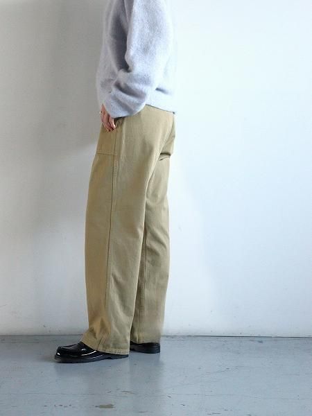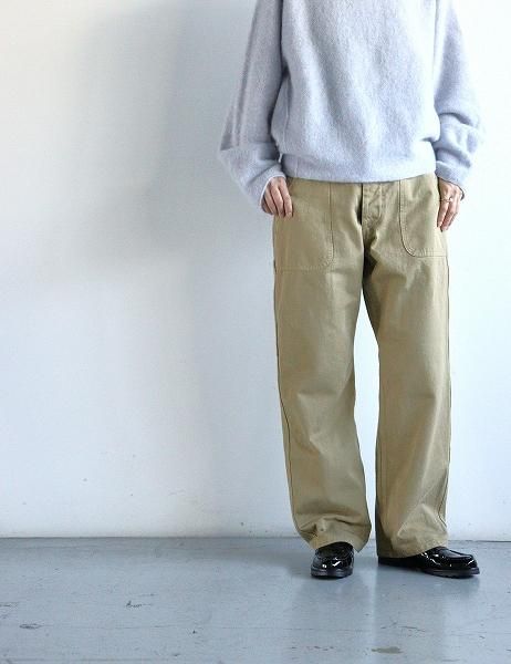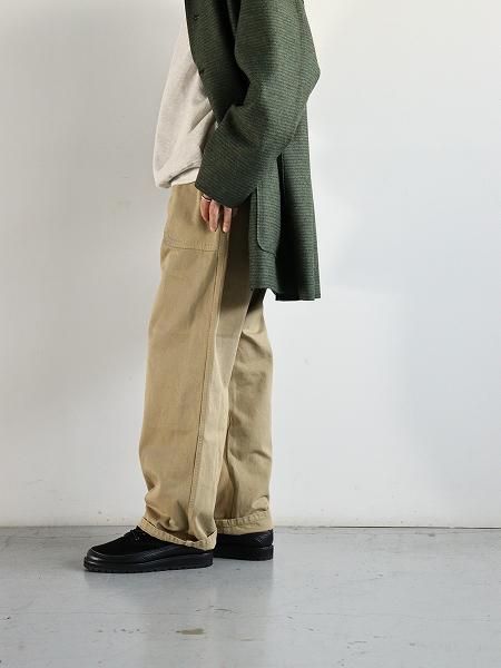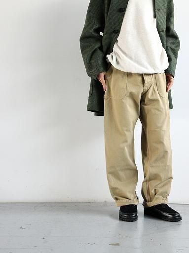 フランスの様々なヴィンテージウェアから インスパイアされたコレクションを展開する OUTIL <ウティ> より届いたチノパンツ 1950sフランス海軍の作業用パンツを ベースにデザインされています 経糸にギリシャピマコットンの単糸 緯糸にインドスビンコットンの双糸を使用し 密度良く織られた 最高級オリジナルチノ素材 経糸に程よいムラ感があるため 綾目が立体的に表れた 趣きある表情に仕上がっています フロントはボタンフライで ラウンドしたベーカーのような貼りポケットや 右側のサイドにはペインターのような 工具が入る縦長のポケットも施されています 股上やワタリにゆとりはありますが ワイド過ぎずないシルエットで 野暮ったさが削がれたような 大人なバランスに仕上がっています 上質な素材を使用しながら フランスの古き時代の空気感を 日本生産の現代にて再現した 素晴らしいチノパンです No.OV-P029 SIZE SPEC (cm) SIZE 0 ウエスト74.0 わたり幅31.0 裾幅22.0 股上32.0 股下70.0 総丈99.0 SIZE 1 ウエスト78.0 わたり幅32.0 裾幅23.0 股上33.0 股下71.0 総丈100.0 SIZE 2 ウエスト80.0 わたり幅33.0 裾幅24.0 股上34.0 股下72.0 総丈102.0 SIZE 3 ウエスト84.0 わたり幅34.0 裾幅25.0 股上35.0 股下73.0 総丈104.0 ※1 サイズ計測の多少の誤差はご了承下さいませ ※2 165cm 50kgの男性(着用画像)で size 1 を着用 ※3 171cm 60kgの男性で size 1 または size 2 を着用 ※4 174cm 68kgの男性で size 2 または size 3 を着用 ※5 180cm 70kgの男性で size 3 を着用 ※6 160cm の女性(着用画像)で size 0 または size 1 を着用 Cotton 100% made in Japan ![]() ![]() ![]() ![]() ![]() ![]() ![]() ![]() ![]() ![]() ![]() ![]() ![]() ![]() 実物の色合いと異なる場合がございますので 何卒ご了承下さいませ 無断での複写・転載はご遠慮くださいませ ![]() ※ サイズ計測の多少の誤差はご了承下さいませ ![]() ![]()