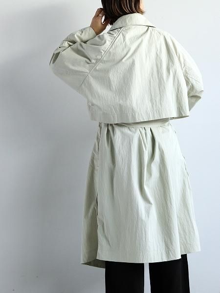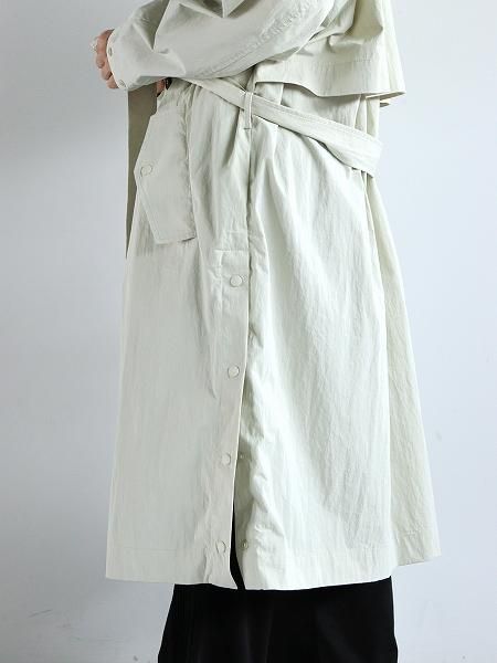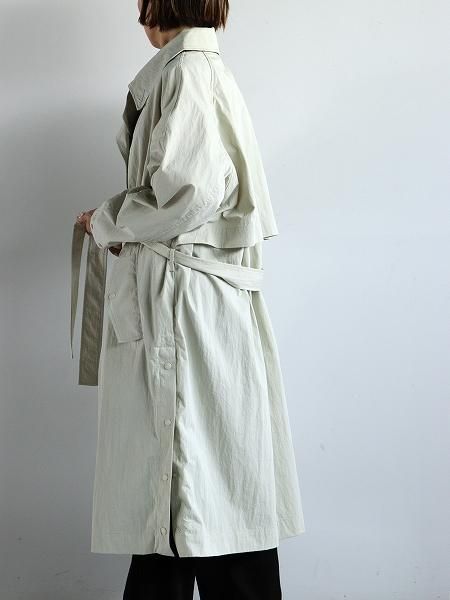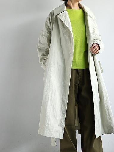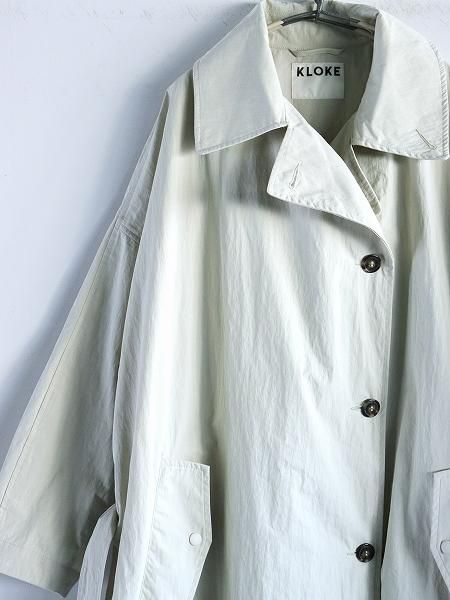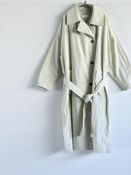 「KLOKE」 オーストラリアはメルボルンにて Adam と Amy Coombes によって 2011年に設立されました 2人は革新とディテールへのこだわり フィット感やクオリティにフォーカスし カッティング デザイン フィット感 着心地の良さを追求し ハイクオリティで機能的な洋服作りを目指しています ちなみにブランド名は 「cloak(英語でマントの意味)」 から由来しています そんなKLOKEより 今回ご紹介するのは Volt Trench ダブルブレスト仕様の一見は シンプルなトレンチコートデザインで リラックス感のあるシルエットながら 全体的にはシャープな印象にまとめています そしてディティールとしても 機能美としても印象的なのは 両脇裾に施された ドットボタンによるサイドスリット フロントをしっかり留めて 共布のウエストベルトを結んでいても 足さばきが軽快になります ファブリックは軽くてハリのある 肌触りも滑らかなコットンナイロンで ほのかなツヤとぬめり感が とても上質でクリーンな印象です クラシカルなポイントを押さえながら トラッドにも カジュアルにも ストリートにも振れるというか その出で立ちからは 新たな大人的品性を感じます KLWPC5811 SIZE SPEC (cm) SIZE S 身幅76.0 着丈115.0 裄丈80.5 ※1 サイズ計測の多少の誤差はご了承下さいませ ※2 160cm の女性(着用画像)で size S を着用しております Cotton 73% Nylon 27% ![]() ![]() ![]() ![]() ![]() ![]() ![]() ![]() ![]() ![]() ![]() ![]() 実物の色合いと異なる場合がございますので 何卒ご了承下さいませ 無断での複写・転載はご遠慮くださいませ ![]() ※ サイズ計測の多少の誤差はご了承下さいませ ![]() ![]()