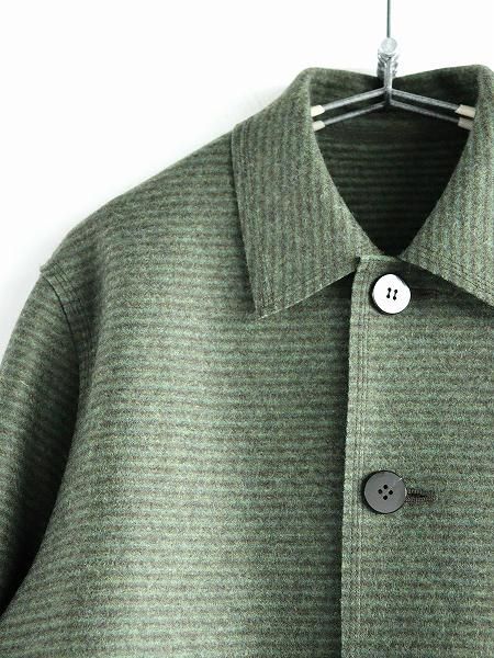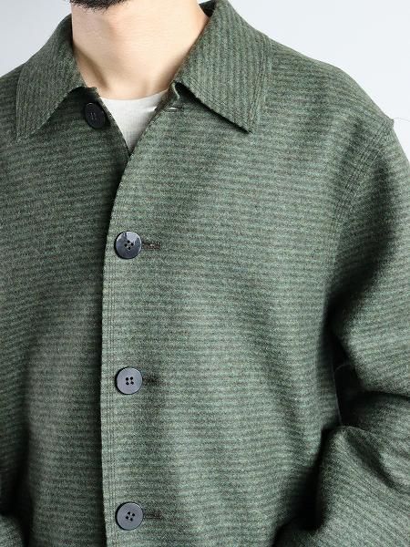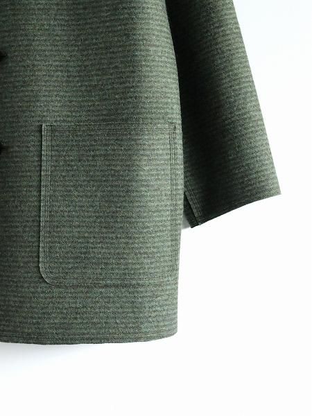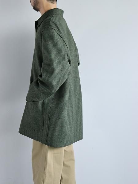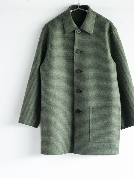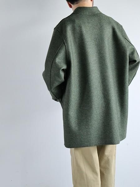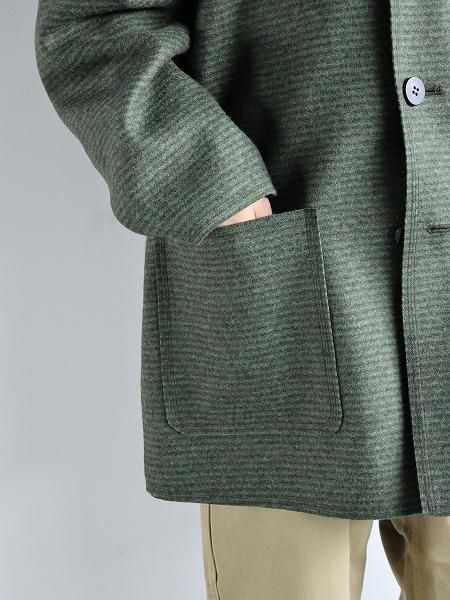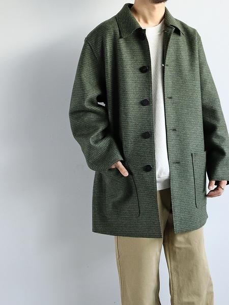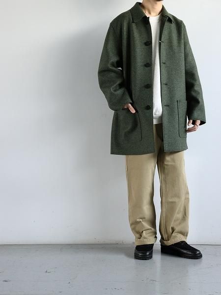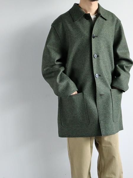 「Cale」 厳選された上質な素材と丁寧な縫製で仕立てた 高品質な衣服を提案しています クリーンで コンテンポラリーな印象ですが Cale が創るモノからは オリジナリティのある佇まいと どこかしらユーモラスな側面も感じます そんな Cale より 今回ご紹介させていただく ウールフェルトのコート Wool 100%に対して とても強い縮絨加工を施し しっかりとしていながらも 柔らかさが際立ったような質感や 奥行きある淡いボーダー柄が 上品かつ大人な素材感です そんなファブリックを カバーオールライクなコートに仕上げています あえて各所をフラットシームで仕上げ ミニマムながら奥行きある容姿と ストレスのない着心地を表現しています 凛としたニュアンスのなかに感じる 大人なヌケ感にとても惹かれてしまいます 通常 相反するような リラックス性と上品さを うまくミックスさせてカタチにした オリジナリティあふれるコートかと SIZE SPEC (cm) SIZE 3 身幅61.0 肩幅47.0 着丈85.0 袖丈57.0 SIZE 4 身幅63.0 肩幅49.0 着丈86.5 袖丈59.0 ※1 サイズ計測の多少の誤差はご了承下さいませ ※2 165cm 50kgの男性(着用画像)で size 3 を着用 ※3 170cm 60kgの男性で size 3 を着用 ※4 174cm 68kgの男性で size 4 を着用 ※5 180cm 70kgの男性で size 4 を着用 Wool 100% made in Japan ![]() ![]() ![]() ![]() ![]() ![]() ![]() ![]() ![]() ![]() 実物の色合いと異なる場合がございますので 何卒ご了承下さいませ 無断での複写・転載はご遠慮くださいませ ![]() ※ サイズ計測の多少の誤差はご了承下さいませ ![]() ![]()