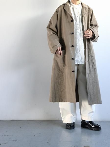ファブリックの質感や 色使いがとても素敵なショップコート OLDMAN'S TAILOR より届きました コットンヘンプで 密に織られたファブリックは 細かなフシのようなネップ感があり ヴィンテージのような質感を表現しています 首元はカジュアルなラペルが施され そのままでも立てても雰囲気よく ラグラン仕様のショルダーや パッチポケット等 細部のディティールも バランスよく施されています 全体のシルエットは 身幅をゆったりと整えられているので ボタンを閉めても開け羽織っても 綺麗に纏まり大人な印象です オーセンティックな出で立ちではありますが シルエットやディティールのバランスにより 普段の装いにもスッと馴染みやすいというか 気負わずサラッと羽織っていただける ショップコートなんです クラシックな雰囲気も纏いながらも スタイリングは色々使いやすいかと SIZE SPEC (cm) SIZE 34 身幅66.0 着丈115.0 裄丈86.0 SIZE 36 身幅68.0 着丈118.0 裄丈87.5 SIZE 38 身幅69.0 着丈120.0 裄丈90.0 SIZE 40 身幅72.0 着丈122.0 裄丈93.0 ※1 サイズ計測の多少の誤差はご了承下さいませ ※2 165cm 50kgの男性で size 34 または size 36 を着用しています ※3 171cm 60kgの男性(着用画像)で size 36 を着用しています ※4 174cm 68kgの男性で size 38を着用 ※5 180cm 70kgの男性で size 40を着用 ※6 160cm の女性(着用画像)で size 34 を着用しています BODY : Cotton 75% HEMP 25% made in Japan ![]() ![]() ![]() ![]() ![]() ![]() ![]() ![]() ![]() ![]() ![]() ![]() 実物の色合いと異なる場合がございますので 何卒ご了承下さいませ 無断での複写・転載はご遠慮くださいませ ![]() ※ サイズ計測の多少の誤差はご了承下さいませ ![]() ![]()