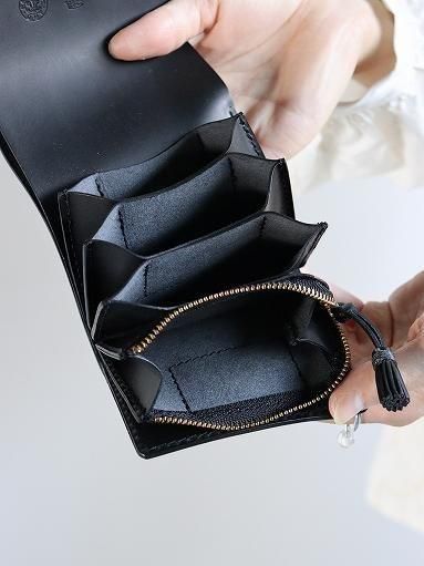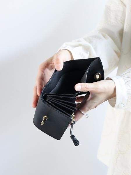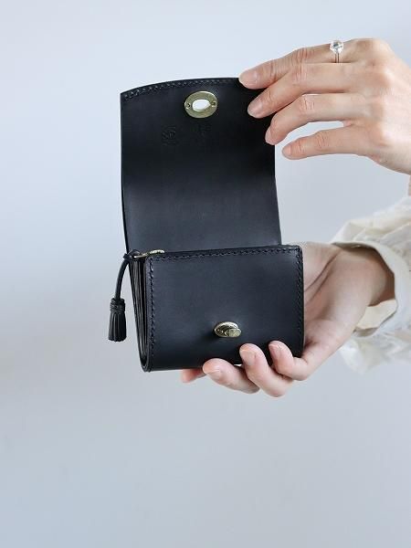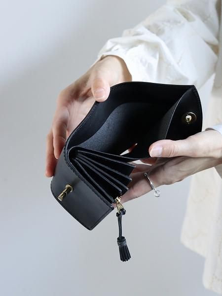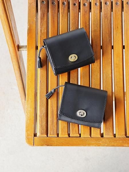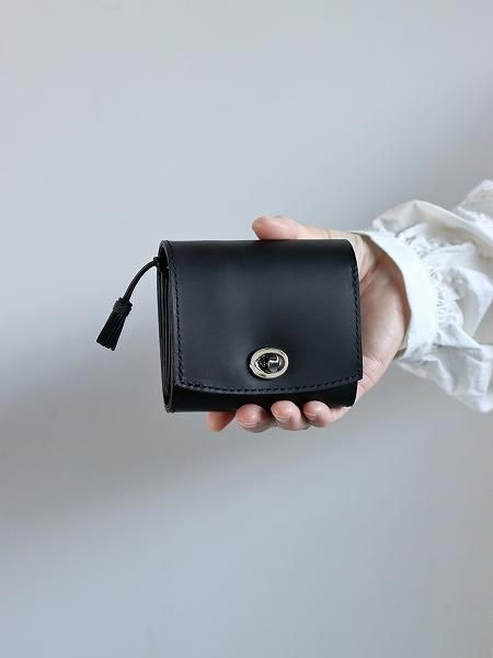 レザーの質感やデザインに惹かれる SMALL TWIST LOCK WALLET シルバーとゴールドの ツイストバックル2種類ご用意しました フラップを開けると カードケースが施されていたり コインケース部分はジップ仕様で タッセルも施されていたりと 雰囲気よく使い勝手よく創りこまれています また使い勝手だけでなく フラップの内側に刻印があったり 見た目にもスッキリと 美しい仕様で形成されています SIZE SPEC (cm) SIZE W10×H9 ※1 サイズ計測の多少の誤差はご了承下さいませ Cow Leather made in Japan ![]() ![]() ![]() ![]() ![]() ![]() ![]() ![]() ![]() col.Silver ![]() col.Gold 実物の色合いと異なる場合がございますので 何卒ご了承下さいませ 無断での複写・転載はご遠慮くださいませ ![]() ※ サイズ計測の多少の誤差はご了承下さいませ ![]() ![]()