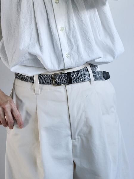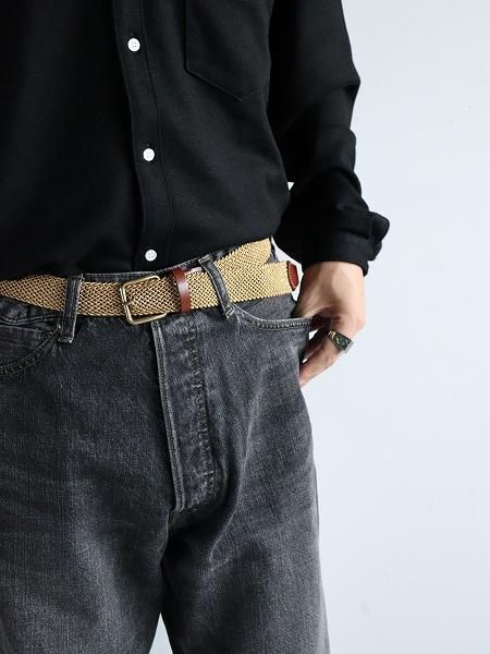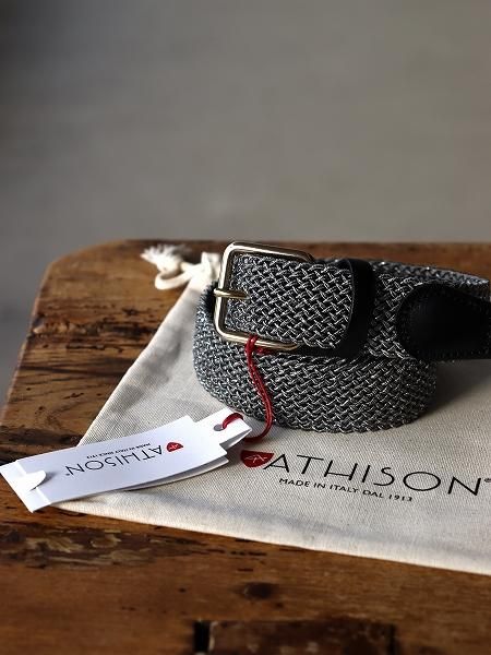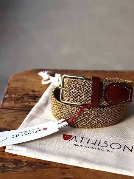 「ATHISON」 (アティソン) 1913年にイタリア北部で創業した 「MANIFATTURA DI DOMODOSSOLA」社が立ち上げました 元々は船舶用ロープやケーブルを製造しており その高度な編組技術を活かして 1970年に世界初の機械編みベルトを開発しています そして現在も素材選びはすべてイタリア国内で 染色 製造に至るまでは自社で行っております そんなイタリアの銘柄よりセレクトさせていただいた カジュアルな雰囲気からトラッドな装いまで 万能的に使えてしまうメッシュベルト 伸縮性のあるエラスティック素材を きれいに細かく編み込み バックルとレザーと組み合わせ 大人な容姿に仕上げています しかも コチラは lurex (ラメ糸)を使用しており 光具合によって キラキラします メッシュ仕様なのでホールはなく いろんな場所でとめることができるうえ 伸縮性に長けているので ストレスを感じることなくしっかりとフィットします デニムやチノパンはもちろん スラックス等の大人な装いにも 雰囲気良く纏まります <SIZE SPEC> SIZE XS-S 幅3.0cm 全長≒94.0cm〜95.0(バックル含む) (メッシュが伸びていない状態で計測) (対応ウエストサイズ ≒ 69cm〜81cm) SIZE S 幅3.0cm 全長≒99.0〜100.0cm(バックル含む) (メッシュが伸びていない状態で計測) (対応ウエストサイズ ≒ 74cm〜86cm) ※1 サイズ計測の多少の誤差はご了承下さいませ ※2 165cm 50kgの男性で size XS-S を着用 ※3 171cm 60kgの男性で size XS-S または size S を着用 ※4 174cm 68kgの男性で size S を着用 ※5 180cm 70kgの男性で size S を着用 ※6 160cm の女性で size XS-S または size S を着用 viscose / lurex / rayon with details in leather made in Italy ![]() ![]() ![]() ![]() col.GOLD ![]() col.SILVER ![]() ![]() ![]() ![]() 実物の色合いと異なる場合がございますので 何卒ご了承下さいませ 無断での複写・転載はご遠慮くださいませ ![]() ※ サイズ計測の多少の誤差はご了承下さいませ ![]() ![]()