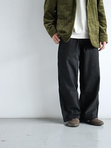 とても上質なコットンダックを使用し ストンと裾にかけて落ちたようなストレートシルエットが とてもカッコいいベーカーパンツが 「alvana」 より届きました ファブリックは細番手の上質なコットンで 高密度に織り上げたコットンダック ダック特有のしっかりとした質感はもちろんありますが 落ち着いた雰囲気や肌触りの滑らかさなど 少し大人で上品な印象です そしてカタチはややワイドでストンと 裾にかけて落ちたようなストレートシルエットで シューズも幅広く合わせれます ミリタリーなベーカーパンツとはまた異なる 少し品のある雰囲気が新鮮です 普段のカジュアルな感じはもちろん きれいめな着こなしにも振れる 大人なベーカーパンツかと ALV-90136 SIZE SPEC (cm) SIZE 2 ウエスト82.0 わたり幅35.0 裾幅27.0 股上36.0 股下68.0 総丈104.0 SIZE 3 ウエスト86.0 わたり幅36.5 裾幅28.0 股上37.0 股下70.0 総丈106.0 SIZE 4 ウエスト92.0 わたり幅37.0 裾幅29.0 股上38.0 股下73.0 総丈108.0 ※1 サイズ計測の多少の誤差はご了承下さいませ ※2 165cm 50kgの男性で size 2 を着用 ※3 170cm 60kgの男性(着用画像)で size 2 を着用 ※4 174cm 68kgの男性で size 3 を着用 ※5 180cm 70kgの男性で size 4 を着用 Cotton 100% made in Japan ![]() ![]() ![]() ![]() ![]() ![]() ![]() ![]() ![]() 実物の色合いと異なる場合がございますので 何卒ご了承下さいませ 無断での複写・転載はご遠慮くださいませ ![]() ※ サイズ計測の多少の誤差はご了承下さいませ ![]() ![]()