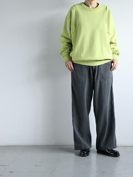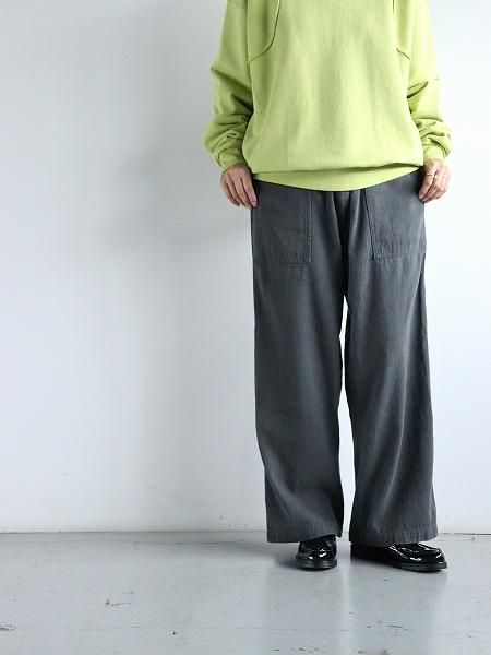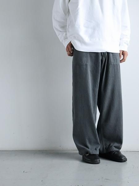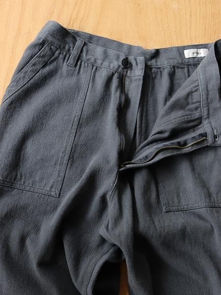 とても上質なナチュラルツイルを使用し ストンと裾にかけて落ちたようなストレートシルエットが とてもカッコいいベーカーパンツが 「alvana」 より届きました ファブリックは「無垢糸」を 丁寧に織りあげたナチュラルツイル ふわりとした柔らかな風合いが特徴ですが その質感とは相反するように綾目もしっかり立ち 洗いをかけた表情もとても素晴らしい素材感で グレイッシュが強めなカーキ色もイイ感じです そしてカタチはややワイドでストンと 裾にかけて落ちたようなストレートシルエットで シューズも幅広く合わせれます ミリタリーなベーカーパンツとは また異なるヴィンテージ感があるというか そんな落としどころに とても惹かれます ALV-90149 SIZE SPEC (cm) SIZE 0 ウエスト74.0 わたり幅33.0 裾幅25.0 股上34.0 股下66.0 総丈97.0 SIZE 2 ウエスト82.0 わたり幅36.0 裾幅27.0 股上36.0 股下68.0 総丈103.0 SIZE 3 ウエスト86.0 わたり幅37.0 裾幅28.0 股上37.0 股下70.0 総丈105.0 SIZE 4 ウエスト91.0 わたり幅37.0 裾幅29.0 股上38.0 股下73.0 総丈108.0 ※1 サイズ計測の多少の誤差はご了承下さいませ ※2 165cm 50kgの男性で size 0 または size 2 を着用 ※3 170cm 60kgの男性(着用画像)で size 2 を着用 ※4 174cm 68kgの男性で size 3 を着用 ※5 180cm 70kgの男性で size 4 を着用 ※6 160cm の女性(着用画像)で size 0 を着用しています Cotton 100% made in Japan ![]() ![]() ![]() ![]() ![]() ![]() ![]() ![]() ![]() ![]() ![]() ![]() ![]() 実物の色合いと異なる場合がございますので 何卒ご了承下さいませ 無断での複写・転載はご遠慮くださいませ ![]() ※ サイズ計測の多少の誤差はご了承下さいませ ![]() ![]()