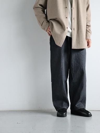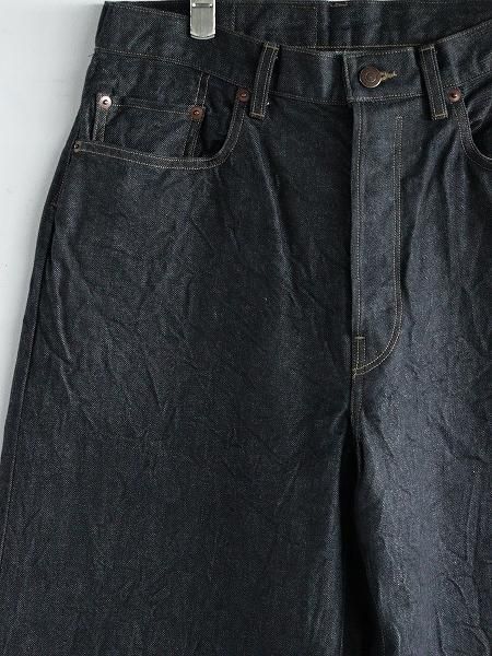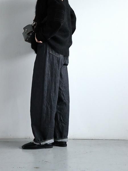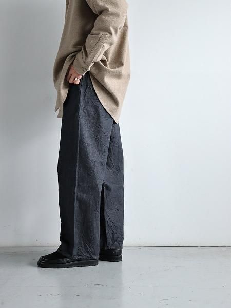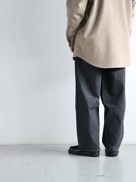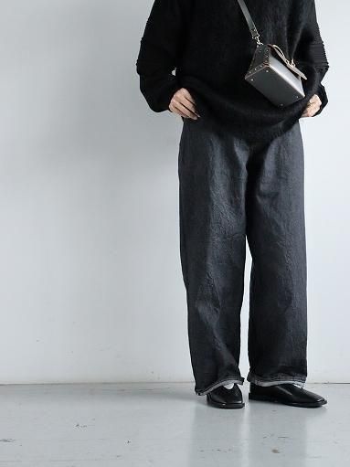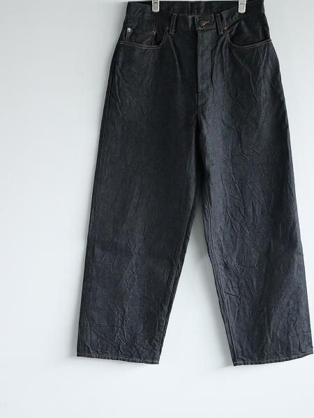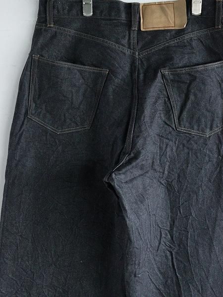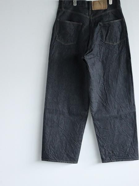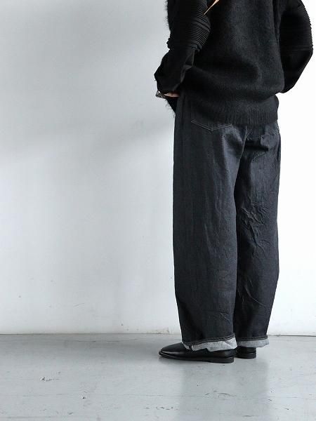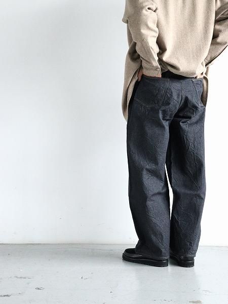 立体感とゆとりをもたせ 綺麗に纏められたデニムが blurhmsROOTSTOCK ブラームスルーツストック より届きました 打ち込み本数と糸を選定し しっかりと織り上げた 13.5ozのデニム地は 自然なムラ感や毛羽立ち そして 綺麗で自然な色落ちが生まれるように 仕立てられています ワイドでゆとりあるシルエットは 単に太くするだけではなく 部分的にバランスを整えて スッキリとしたフォルムに纏めています また着用時にストレートに映るように ほんの少しテーパードにして形成しています 穿き始めはやや固めですが 穿き込むほどに柔らかくなるよう仕上げられているので 経年変化が楽しみなデニムパンツです フロントのボタンフライや 紙パッチやセルビッチの仕様など 細部のディティールも流石です ちなみに色落ちのきれいなブラックデニムで ややワイドなシルエットというところは ユーズドやヴィンテージでも ほとんど存在しないというか そんなこんなのブラックを ぜひお楽しみください bROOTS25S8F25 SIZE SPEC (cm) SIZE 1 ウエスト74.0 わたり幅31.0 裾幅24.0 股上32.0 股下71.0 総丈104.0 SIZE 2 ウエスト80.0 わたり幅32.0 裾幅24.5 股上32.5 股下71.5 総丈104.5 SIZE 3 ウエスト84.0 わたり幅33.0 裾幅25.5 股上33.0 股下72.0 総丈105.0 SIZE 4 ウエスト89.0 わたり幅34.0 裾幅26.5 股上33.5 股下73.0 総丈106.0 ※1 サイズ計測の多少の誤差はご了承下さいませ ※2 165cm 50kgの男性で size 1 を着用 ※3 171cm 60kgの男性(着用画像)で size 2 を着用 ※4 174cm 68kgの男性で size 2 または size 3 を着用 ※5 180cm 70kgの男性で size 3 または size 4 を着用 ※6 160cm の女性(着用画像)で size 1 を着用 Cotton 100% made in Japan ![]() ![]() ![]() ![]() ![]() ![]() ![]() ![]() ![]() ![]() ![]() ![]() ![]() ![]() ![]() ![]() ![]() 実物の色合いと異なる場合がございますので 何卒ご了承下さいませ 無断での複写・転載はご遠慮くださいませ ![]() ※ サイズ計測の多少の誤差はご了承下さいませ ![]() ![]()