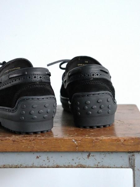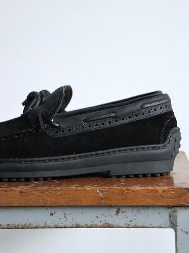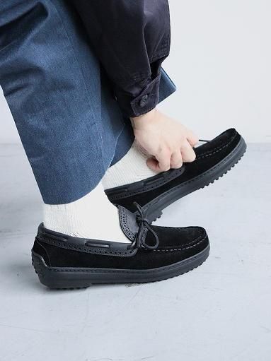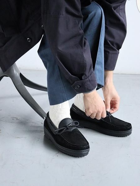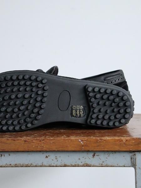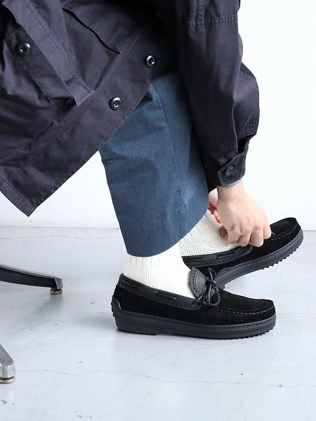「Verginia」 (ヴァージニア) イギリスやフランスのシューズブランドに 生産供給している 技術力がとても高い ポルトガル北部のファクトリーで 丁寧に製作されています そして今回ご紹介するのが TEX DRIVING MOCCASIN 上質なスウェードとレザーを使用した モカシンとドライビングシューズを 掛け合わせたようなデザインで 各所にメダリオンが施されています 80年代のイギリスやアメリカのファッション背景をアッパーに 80年代のイタリアの某ブランドのドライビングシューズのソールをシンクロさせ 時代と国境を超え モダンな解釈で表現したというか そんなこんなの落としどころが絶妙で とても完成度の高い仕上がりです きれいなレザーシューズのようで モカシンシューズのようで ドライビングシューズのようで 様々なディティールが バランスよくミックスされたデザインと ローファーよりリラックスな履き心地が絶妙です ワークやミリタリーなパンツから きれいに整えられたトラウザーまで 私たちが連想するボトムスとの相性が良く たくさん履いてしまいそうです SIZE SPEC (cm) SIZE 40(25.5cm~26.0cm) SIZE 41(26.0cm~26.5cm) SIZE 42(27.0cm~27.5cm) SIZE 43(27.5cm~28.0cm) SIZE 44(28.5cm~29.0cm) ※cmサイズ表記は目安となります また靴下等のはきものによりサイズ感も異なります 予めご了承下さいませ BODY : Suede / Leather SOLE : Synthetic Rubber made in Portugal ![]() ![]() ![]() ![]() ![]() ![]() ![]() ![]() ![]() ![]() ![]() 実物の色合いと異なる場合がございますので 何卒ご了承下さいませ 無断での複写・転載はご遠慮くださいませ ![]() ※ サイズ計測の多少の誤差はご了承下さいませ ![]() ![]()