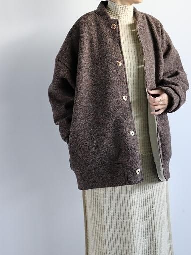 Worker’s Nobility (ワーカースノビリティ) スペインを拠点に ピレネー山脈近くの小さな町で 伝統的な縫製技術を使用する 熟練した職人によって製作されています 素材はスペインをはじめヨーロッパで 生産されているナチュラルな素材を用いて 建築を衣服で表現したような 構築的なデザインに仕上がっています 古き良きドレスからワークウエアまで 様々なニュアンスやディティールを 洗練した容姿に落とし込んだような 絶妙なモノ創りをされています そんな銘柄より スタジアムジャケットのような ならではなデザインのアウター Wool Bomber Jacket 届きました ファブリックはふっくらと織られ仕上げられた オランダ産のとても上質な縮絨ウールメルトン ヴィンテージのような表情と質感です 裏地は肌当たりの良い 柔らかなコットンが施されています 首元はスタンドカラーで 袖口や裾は リブを表現したような切り替えだったり シルエットは ゆとりを持たせたドロップショルダーだったり ゆったりしたフォルムに形成されています 袖や着丈は長めの溜まりある容姿で 全体を絶妙なバランスに仕上げた 構築的なニュアンスのデザインがとても素敵です 贅沢にたくさん生地を用いて 緩いフォルムに仕上げているので ボリュームのあるトップスにも 羽織りやすい様です 日常的に使えるシルエットと素材感ですが コンテンポラリーで構築的なデザイン そしてクラシカルでありながら どこかしら感じる新たな空気感というか そんなところに惹かれます SIZE SPEC (cm) SIZE SIZE M 身幅66.0 肩幅66.0 着丈76.0 袖丈46.0 SIZE L 身幅68.0 肩幅68.0 着丈78.0 袖丈48.0 ※1 サイズ計測の多少の誤差はご了承下さいませ ※2 160cmの女性(着用画像)で size M を着用しています ※3 165cm 50kgの男性で size M を着用しております ※4 170cm 60kgの男性で size M または size L を着用しております ※5 174cm 68kgの男性で size L を着用しております FABLIC : WOOL 100% LINING : COTTON 100% made in Spain ![]() ![]() ![]() ![]() ![]() ![]() ![]() ![]() ![]() ![]() ![]() ![]() ![]() ![]() ![]() ![]() ![]() 実物の色合いと異なる場合がございますので 何卒ご了承下さいませ 無断での複写・転載はご遠慮くださいませ ![]() ※ サイズ計測の多少の誤差はご了承下さいませ ![]() ![]()