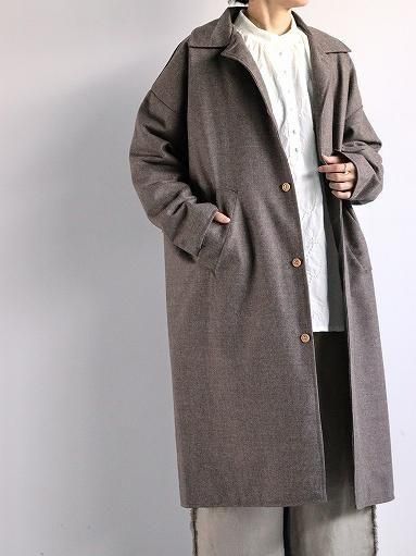 Worker’s Nobility (ワーカースノビリティ) スペインを拠点に ピレネー山脈近くの小さな町で 伝統的な縫製技術を使用する 熟練した職人によって製作されています 素材はスペインをはじめヨーロッパで 生産されているナチュラルな素材を用いて 建築を衣服で表現したような 構築的なデザインに仕上がっています 古き良きドレスからワークウエアまで 様々なニュアンスやディティールを 洗練した容姿に落とし込んだような 絶妙なモノ創りをされています そんな銘柄よりこの度は Espiga Trench Coat 届きました ファブリックは とても上質なウール素材で 同系色の細かな格子柄に織られた 綺麗な生地ですが ヴィンテージのような雰囲気も纏った 絶妙な見映えのライトウールファブリック また裏地は肌当たりの良い 柔らかなコットンが施されています 首元はステンカラーのようで 程よい開きがあったり フロントにはポケットが施されていたり 身幅にゆとりを持たせたドロップショルダーで ゆったりしたフォルムに形成されています また袖や着丈を絶妙な丈で整え 全体を綺麗なバランスに仕上げた 構築的なニュアンスのデザインがとても魅力的です 贅沢にたくさん生地を用いて 緩いフォルムに仕上げているので ドルマンスリーブのトップスやニット ボリュームのあるワイドパンツ等にも 合わせやすく羽織りやすい様です 日常的に使えるシルエットと素材感ですが コンテンポラリーで構築的なデザイン そしてクラシカルでありながら どこかしら感じる新たな空気感というか 雰囲気良く纏めた そんなところに惹かれます SIZE SPEC (cm) SIZE M 身幅66.0 肩幅63.0 着丈109.0 袖丈50.5 SIZE L 身幅67.0 肩幅63.5 着丈114.0 袖丈52.5 ※1 サイズ計測の多少の誤差はご了承下さいませ ※2 165cm 50kgの男性(着用画像)で size M を着用しています ※3 170cm 60kgの男性で size M または L を着用しています ※4 174cm 68kgの男性で size L を着用 ※5 160cm の女性(着用画像)で size M を着用しています FABLIC : LIGHT WOOL 100% LINING : COTTON 100% made in Spain ![]() ![]() ![]() ![]() ![]() ![]() ![]() ![]() ![]() ![]() ![]() ![]() ![]() ![]() 実物の色合いと異なる場合がございますので 何卒ご了承下さいませ 無断での複写・転載はご遠慮くださいませ ![]() ※ サイズ計測の多少の誤差はご了承下さいませ ![]() ![]()