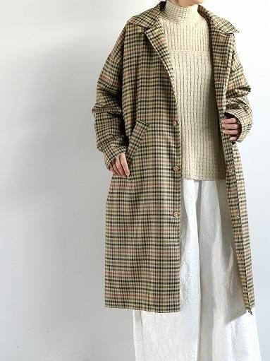 Worker’s Nobility (ワーカースノビリティ) スペインを拠点に ピレネー山脈近くの小さな町で 伝統的な縫製技術を使用する 熟練した職人によって製作されています 素材はスペインをはじめヨーロッパで 生産されているナチュラルな素材を用いて 建築を衣服で表現したような 構築的なデザインに仕上がっています 古き良きドレスからワークウエアまで 様々なニュアンスやディティールを 洗練した容姿に落とし込んだような 絶妙なモノ創りをされています そんな銘柄よりこの度は Plaid Trench Coat 届きました ファブリックは とても上質なウール素材で 多色のチェック柄に織られた 綺麗な生地ですが ヴィンテージのような雰囲気も纏った 絶妙な見映えのライトウールファブリック camel grey black strawberry 配色がとても素敵なチェック柄です また裏地は肌当たりの良い 柔らかなコットンが施されています 首元はステンカラーのようで 程よい開きがあったり フロントはウッドボタンが施されていたり 身幅にゆとりを持たせたドロップショルダーで ゆったりしたフォルムに形成されています また袖や着丈を絶妙な丈で整え 全体を綺麗なバランスに仕上げた 構築的なニュアンスのデザインがとても魅力的です 贅沢にたくさん生地を用いて 緩いフォルムに仕上げているので ドルマンスリーブのトップスやニット ボリュームのあるワイドパンツ等にも 合わせやすく羽織りやすい様です 日常的に使えるシルエットと素材感ですが コンテンポラリーで構築的なデザイン そしてクラシカルでありながら どこかしら感じる新たな空気感というか 雰囲気良く纏めた そんなところに惹かれます SIZE SPEC (cm) SIZE M 身幅64.5 肩幅63.0 着丈107.0 袖丈50.0 SIZE L 身幅65.0 肩幅63.5 着丈113.0 袖丈52.5 ※1 サイズ計測の多少の誤差はご了承下さいませ ※2 165cm 50kgの男性(着用画像)で size M を着用しています ※3 170cm 60kgの男性で size M または L を着用しています ※4 174cm 68kgの男性で size L を着用 ※5 160cm の女性(着用画像)で size M を着用しています FABLIC : LIGHT WOOL 100% LINING : COTTON 100% made in Spain ![]() ![]() ![]() ![]() ![]() ![]() ![]() ![]() ![]() ![]() ![]() ![]() ![]() ![]() 実物の色合いと異なる場合がございますので 何卒ご了承下さいませ 無断での複写・転載はご遠慮くださいませ ![]() ※ サイズ計測の多少の誤差はご了承下さいませ ![]() ![]()