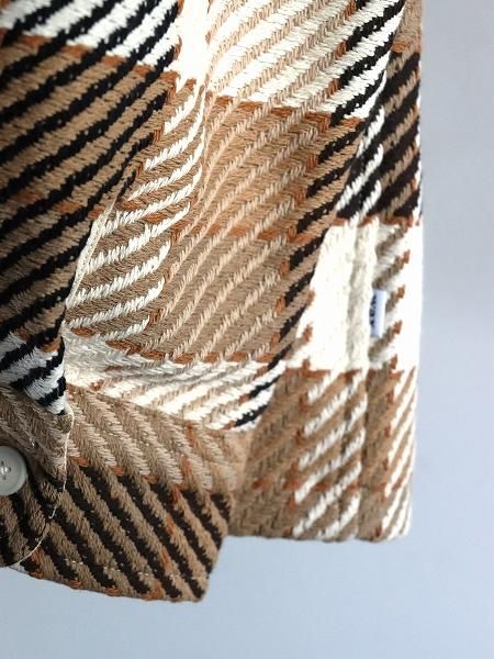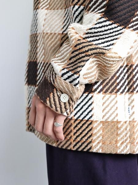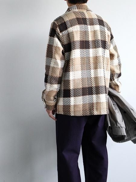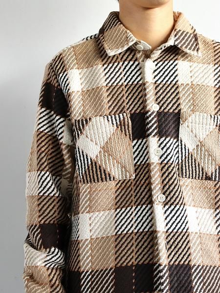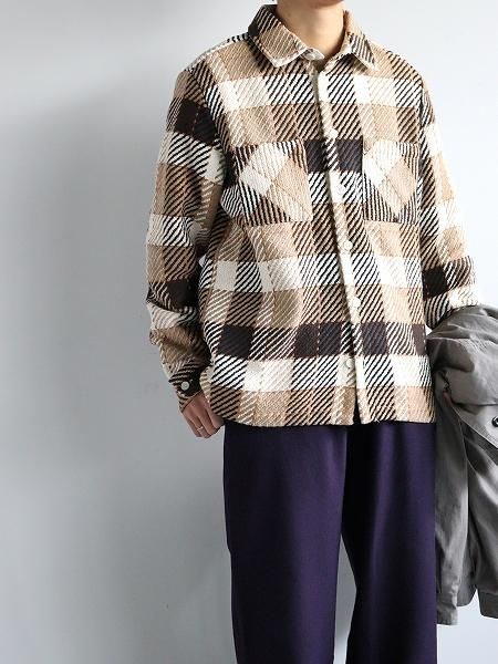 wax london (ワックスロンドン) 世界中の偉才な職人技と英国の伝統が交わり 日常を豊かにする 個性的でタイムレスな服を生み出しながら 環境にも配慮した 持続可能な素材や製造プロセスを取り入れることで 地球との共存を大切にした服作りを実践しています 2015年にロンドンを拠点にスタートし スポーツ ワークウェア ミュージック コミュニティ からインスパイアされ クラシックな型をベースに 新しさと懐かしさがミックスされたような モノ作りをされています そんなブランドからセレクトしたのは 画期的な生地やテクスチャーにより 洗練されたアイテムに仕上げられた WHITING OVERSHIRT 正式名称である ホワイティングオーバーシャツのホワイティングは 創業者の祖父の名前が由来で ブランドの思いが表現された 代表的アイテムです このシャツの醍醐味はやはり 特殊な織機で織り上げられた バスケット織のファブリック 凸凹とした表面感は クラシックな織り柄が立体的に浮き出るような とても美しい仕上がりです ふっくらとしていて 肌当たりも良く ミドルオンスよりやや厚手ですが 固さはまったくなく 柔らかさと弾力のある その素材感は格別です 柄に馴染むような両胸のパッチポケットも特徴的で シャツとしても ブルゾンとしても着れる 利便性あるオーバーシャツに仕立てられています スウェットやニットの上から羽織ると 太い糸で織られたファブリックの質感により チェック柄のジャケットとして活躍してくれます 寒い季節はコートやジャケットの下に忍ばせると 素材感の表情と質感から シャツ以上の スウェットやセーターの役割を担ってくれて 下から覗くファブリックの表情もイイ感じです 気分と気温に合わせて 着こなしをお楽しみいただければと SIZE SPEC (cm) SIZE M 身幅57.0 肩幅45.0 着丈74.0 袖丈63.0 SIZE L 身幅59.0 肩幅46.5 着丈75.0 袖丈64.0 ※1 サイズ計測の多少の誤差はご了承下さいませ ※2 165cm 52kgの男性で size M を着用 (※col.PIKE CHECK - ORANGE MULTI にて size M の着用画像がございます) ※3 170cm 60kgの男性で size M を着用 ※4 174cm 68kgの男性で size L を着用 ※5 180cm 70kgの男性で size L を着用 Recycled Cotton 80% Cotton 7% Polyester 10% Mixed Fibres 3% made in TUNISIA ![]() ![]() ![]() ![]() ![]() ![]() ![]() ![]() ![]() ![]() 実物の色合いと異なる場合がございますので 何卒ご了承下さいませ 無断での複写・転載はご遠慮くださいませ ![]() ※ サイズ計測の多少の誤差はご了承下さいませ ![]() ![]()