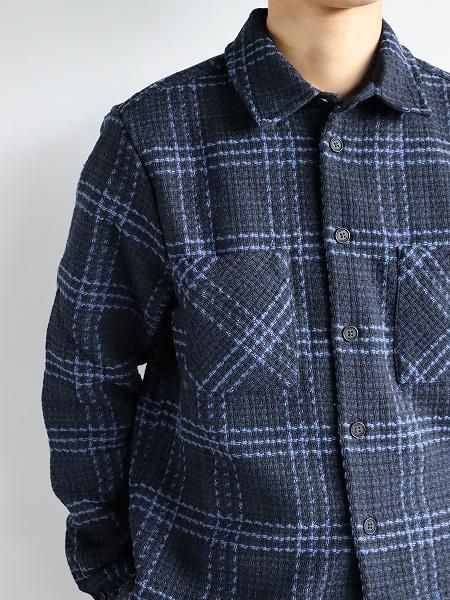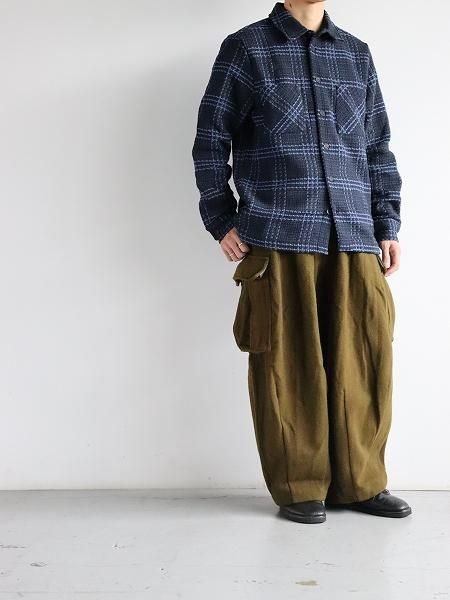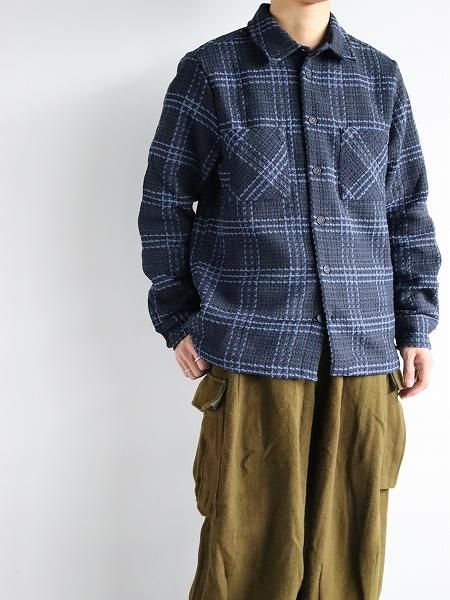wax london (ワックスロンドン) 世界中の偉才な職人技と英国の伝統が交わり 日常を豊かにする 個性的でタイムレスな服を生み出しながら 環境にも配慮した 持続可能な素材や製造プロセスを取り入れることで 地球との共存を大切にした服作りを実践しています 2015年にロンドンを拠点にスタートし スポーツ ワークウェア ミュージック コミュニティ からインスパイアされ クラシックな型をベースに 新しさと懐かしさがミックスされたような モノ作りをされています そんなブランドからセレクトしたのは 画期的な生地やテクスチャーにより 洗練されたアイテムに仕上げられた WHITING OVERSHIRT 正式名称である ホワイティングオーバーシャツのホワイティングは 創業者の祖父の名前が由来で ブランドの思いが表現された 代表的アイテムです このシャツの醍醐味はやはり 特殊な織機で織り上げられた バスケット織のファブリック 凸凹とした表面感は クラシックな織り柄が立体的に浮き出るような とても美しい仕上がりです ふっくらとしていて 肌当たりも良く ミドルオンスよりやや厚手ですが 固さはまったくなく 柔らかさと弾力のある その素材感は格別です 柄に馴染むような両胸のパッチポケットも特徴的で シャツとしても ブルゾンとしても着れる 利便性あるオーバーシャツに仕立てられています スウェットやニットの上から羽織ると 太い糸で織られたファブリックの質感により チェック柄のジャケットとして活躍してくれます 寒い季節はコートやジャケットの下に忍ばせると 素材感の表情と質感から シャツ以上の スウェットやセーターの役割を担ってくれて 下から覗くファブリックの表情もイイ感じです 気分と気温に合わせて 着こなしをお楽しみいただければと SIZE SPEC (cm) SIZE M 身幅56.0 肩幅44.0 着丈72.5 袖丈62.0 SIZE L 身幅59.0 肩幅46.0 着丈74.0 袖丈64.0 ※1 サイズ計測の多少の誤差はご了承下さいませ ※2 165cm 52kgの男性で size M を着用 (※col.MARINE BEATNIK V3 - MARINE にて size M の着用画像がございます) ※3 170cm 60kgの男性(着用画像)で size M を着用 ※4 174cm 68kgの男性で size L を着用 ※5 180cm 70kgの男性で size L を着用 Recycled Cotton 80% Polyester 18% Mixed Fibres 2% made in TUNISIA ![]() ![]() ![]() ![]() ![]() ![]() ![]() ![]() ![]() ![]() ![]() 実物の色合いと異なる場合がございますので 何卒ご了承下さいませ 無断での複写・転載はご遠慮くださいませ ![]() ※ サイズ計測の多少の誤差はご了承下さいませ ![]() ![]()