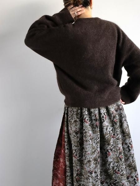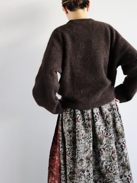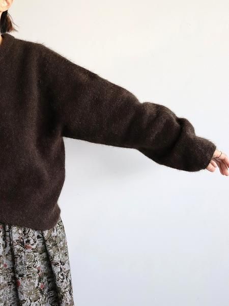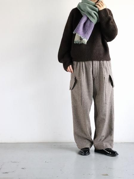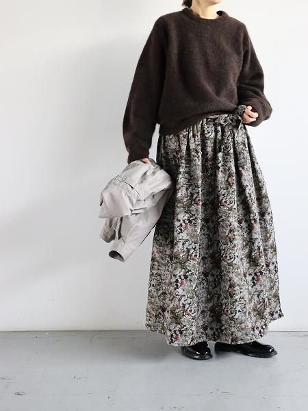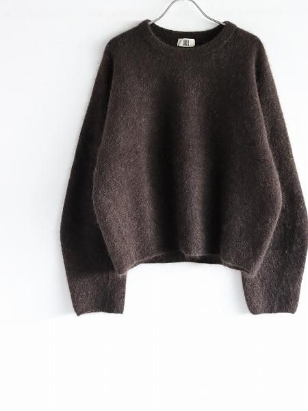 unfil アンフィル 数々の服を着てきた大人が満足するような 上質な素材感やシルエットを大切にしながら ヴィンテージやストリートの様々なニュアンスを含んだ リラックスさのある着心地の丁寧な服作りをさています そんな銘柄から 毛足のフワフワした見映えが雰囲気良い とても軽くて暖かな プルオーバーニットが届きました 素材は生後1年以内のアンゴラ山羊の スーパーキッドモヘア その中でも非常に細く柔らかな部分を使用しています そしてメリノウールをブレンドしたり 芯にポリウレタンを使用したりする事で ギュッと目の詰まった編み地に仕上がり 軽くて暖かくステレッチ性もある 素晴らしい素材に仕上げられているんです そんな素材を用いて 横方向に編んだプルオーバーは 糸をホールガーメントのマシンで すごく大きく編み上げた後に 一気に縮めて仕上げて形成されています シンプルなクルーネックですが 袖は少し丸みのあるコクーンな形状なので 中に着るカタチを選ばず 見た目にも雰囲気良いフォルムに纏まっています 軽くて風も通しにくい 安心感のある仕上がりですが スタイリッシュな雰囲気も纏う ならではなプルオーバーニットです WFSP-UW110 SIZE SPEC (cm) SIZE 1 身幅59.0 着丈56.0 袖丈83.0 ※1 サイズ計測の多少の誤差はご了承下さいませ ※2 160cm の女性(着用画像)で size 1 を着用 Mohair 38% Wool 38% Nylon 19% Polyurethane 5% made in Japan ![]() ![]() ![]() ![]() ![]() ![]() ![]() ![]() ![]() 実物の色合いと異なる場合がございますので 何卒ご了承下さいませ 無断での複写・転載はご遠慮くださいませ ![]() ※ サイズ計測の多少の誤差はご了承下さいませ ![]() ![]()