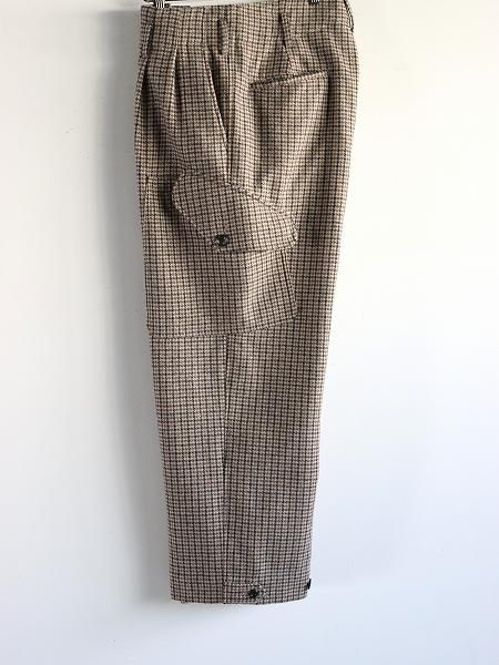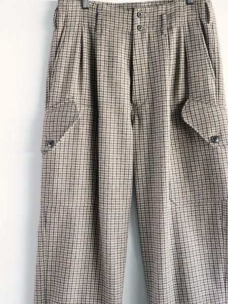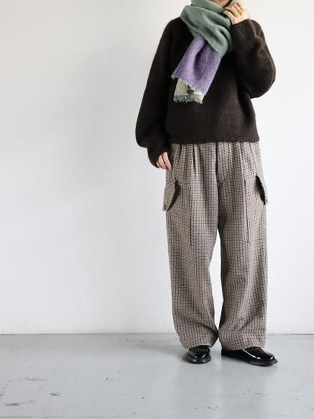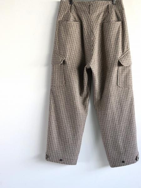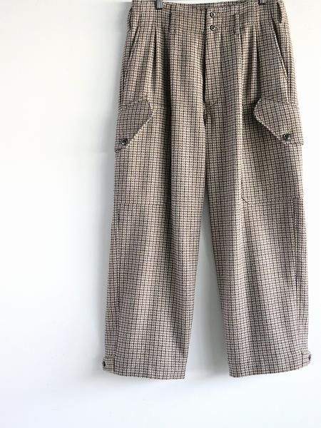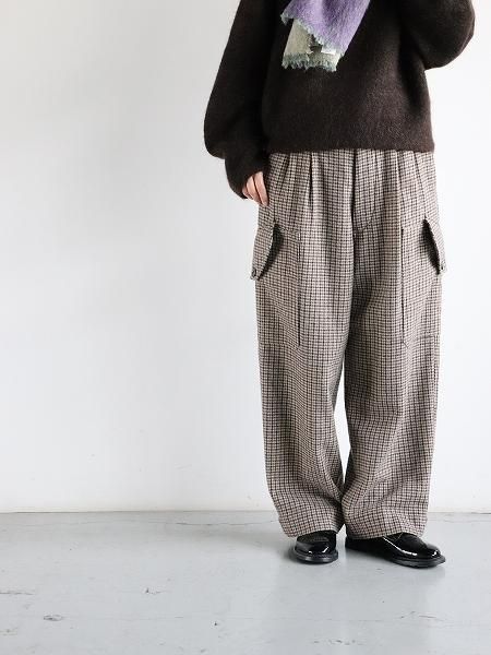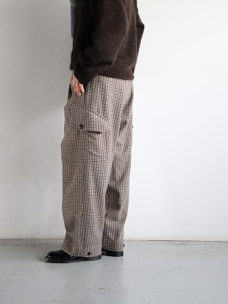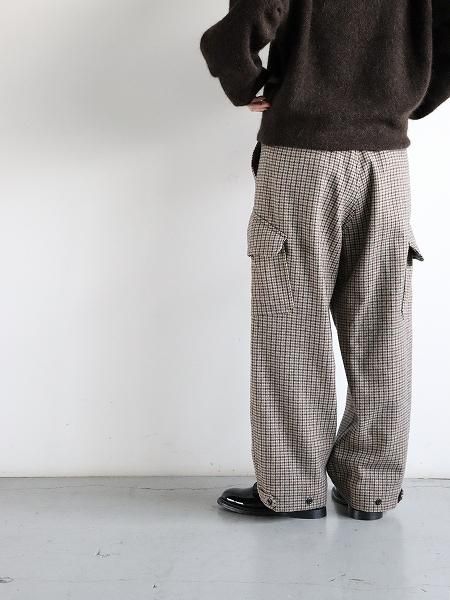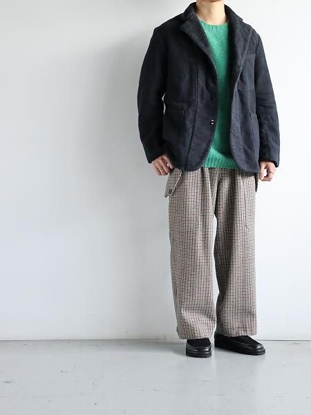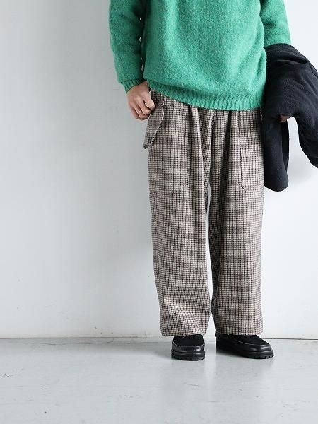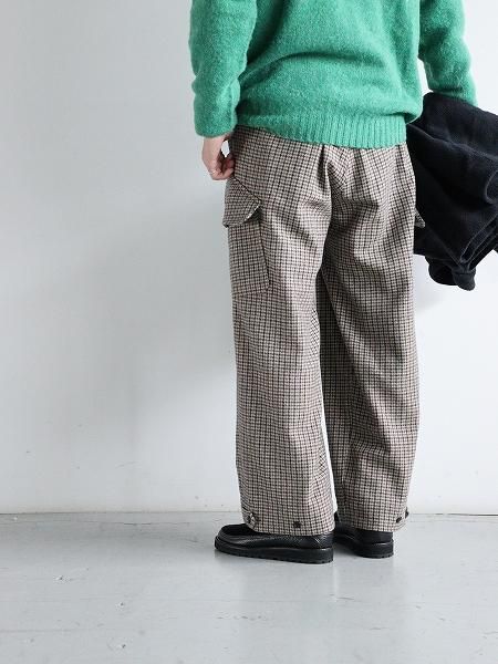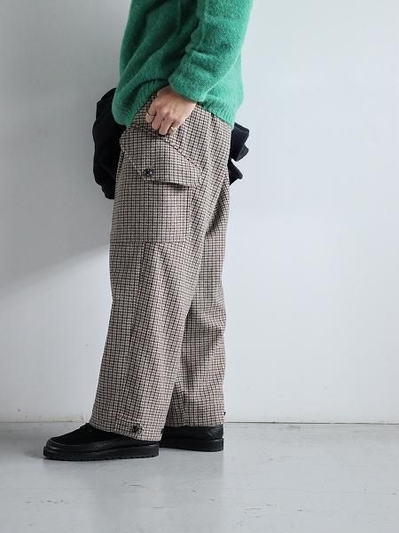 リラックス感ある オーバーパンツなフォルムと 表情ある素材感が素晴らしいカーゴパンツが OLDMAN'S TAILOR メンズコレクションより届きました コチラの特徴的なウェアディティールが 1940年代のイギリス軍 ロイヤルエアフォースの ウェアディティールを参考にした 「フィッシュマウスポケット」と呼ばれるフラップポケット ポケットスペースに対して フラップが斜めに施されています 使用しているファブリックは とても上質なウール×アルパカによる ヴィンテージのような雰囲気も感じる オードマンズテーラーならではのガンクラブチェック brown olive black の3色使いによる 配色の感じがとても素敵です カタチは股上やワタリにゆとりを持たせた 裾にかけて太くストンと落ちる ワイドなシルエットです あくまで容姿はとても男らしくて 無骨な機能美を感じるデザインですが 上質な素材感といい 仕立てといい 大人な品を感じるカーゴパンツです No.m1280 SIZE SPEC (cm) SIZE 36 ウエスト80.0 わたり幅36.0 裾幅24.0 股上36.0 股下64.0 総丈99.0 SIZE 38 ウエスト83.0 わたり幅37.0 裾幅25.0 股上37.0 股下66.0 総丈100.5 SIZE 40 ウエスト86.0 わたり幅38.0 裾幅26.0 股上38.0 股下68.0 総丈102.5 ※1 サイズ計測の多少の誤差はご了承下さいませ ※2 165cm 52kgの男性で size 36 を着用 ※3 170cm 60kgの男性(着用画像)で size 38 を着用 ※4 174cm 68kgの男性で size 38 を着用 ※5 180cm 70kgの男性で size 38 または size 40 を着用しております ※6 160cm の女性(着用画像)で size 36 を着用 Wool 73% Alpaca 7% Nylon 20% made in Japan ![]() ![]() ![]() ![]() ![]() ![]() ![]() ![]() ![]() ![]() ![]() ![]() ![]() ![]() ![]() ![]() ![]() ![]() ![]() 実物の色合いと異なる場合がございますので 何卒ご了承下さいませ 無断での複写・転載はご遠慮くださいませ ![]() ※ サイズ計測の多少の誤差はご了承下さいませ ![]() ![]()