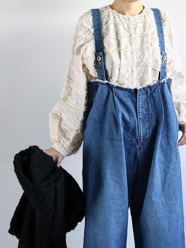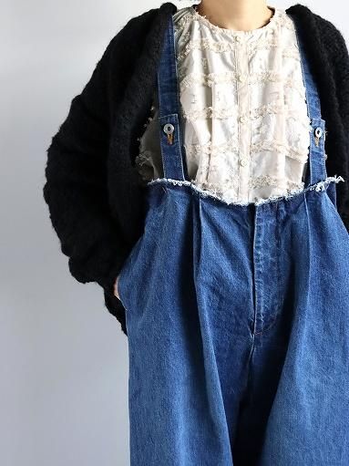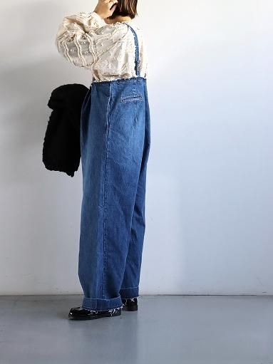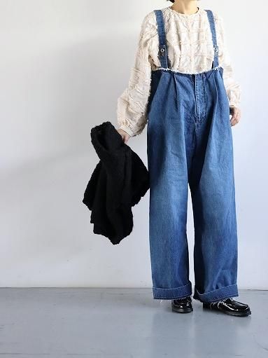 立体的なフォルムが雰囲気良い DECONSTRUCT SUSPENDER PANTS R&D.M.Co-(オールドマンズテーラー) より届きました ヴィンテージライクな加工を施した 平均的な中肉のオンスですが 穿きやすい魅力的なデニムで 奥行きある表情が 野暮ったさのない洗練された印象です 帯ベルトを外して解体したような 切りっぱなしの表情や ハイウエストのタック仕様や バックスタイルのダーツ等 立体的でクラシカルな印象も残しながら 雰囲気良く仕上げられています サスペンダーは2段階で調整できたり 裾はプレスもあるので畳んでみたり ロールアップしてみたり 調整しながら表情を変えられる仕様です 安心感のある穿き心地ですが ストンと落ち感のある綺麗なフォルムなので スタイリッシュな容姿にまとまります 色落ちの加工も施されていますが ハイウエストのタックワイドシルエットなので 土臭さを感じない ならではなデニムのサスペンダーパンツです no.7719 SIZE SPEC (cm) SIZE F ウエスト46.0 わたり幅38.0 裾幅29.0 股上44.0 股下72.0 総丈116.0 ※1 サイズ計測の多少の誤差はご了承下さいませ ※2 160cmの女性(着用画像)で size F を着用しています Cotton 100% made in Japan ![]() ![]() ![]() ![]() ![]() ![]() ![]() ![]() ![]() ![]() ![]() ![]() ![]() ![]() 実物の色合いと異なる場合がございますので 何卒ご了承下さいませ 無断での複写・転載はご遠慮くださいませ ![]() ※ サイズ計測の多少の誤差はご了承下さいませ ![]() ![]()