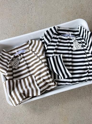 柔らかな着心地とデザインに惹かれる ボーダーカットソーが R&D.M.Co-(オールドマンズテーラー) より届きました ファブリックはコットンで とても軽くて柔らかな肌あたりの 裏起毛のボーダー柄 ほんのり起毛感のある質感がとても心地良く 1枚で着ても雰囲気良く 重ね着もしやすい絶妙な肉感です そんな素材を用いて 切り替えのつなぎ目を表に出して 立体感ある見映えに仕上げています 首元は少し立ち感があったり 端々はカットオフで 軽い印象に纏まっています シルエットは程よくゆるさがあり 袖ワタリはスッキリと纏めて 着丈を長めに設定しているので タックインなスタイルにも最適です つなぎ目や端々が ロールする表情も楽しみな 定番的なボーダーの印象とは異なった 新たなデザインのカットソーです no.7744 SIZE SPEC (cm) SIZE F 身幅49.0 着丈60.0 裄丈81.0 ※1 サイズ計測の多少の誤差はご了承下さいませ ※2 160cmの女性(着用画像)で size F を着用しています Cotton 100% made in Japan ![]() ![]() ![]() ![]() ![]() ![]() ![]() ![]() ![]() col.White × Khaki ![]() col.White × Black ![]() 実物の色合いと異なる場合がございますので 何卒ご了承下さいませ 無断での複写・転載はご遠慮くださいませ ![]() ※ サイズ計測の多少の誤差はご了承下さいませ ![]() ![]()