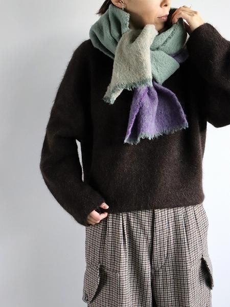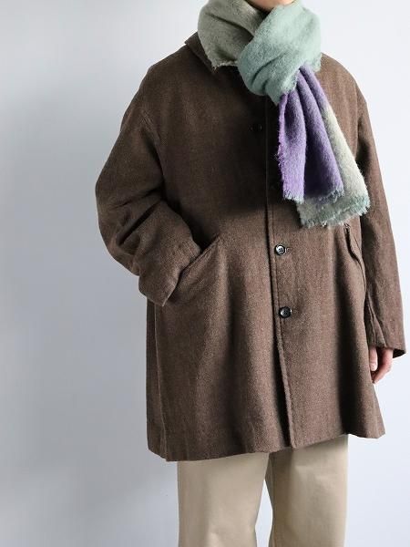 日本最大の毛織物産地である尾州地区にて 50年以上続いていた織工場のアイデンティティーを引き継ぎ 「織り」に重きを置いて ブランケットやラグからストールまで 独自のファブリックを提案するテキスタイルブランド・・・ loomer ルーマー 50年以上前のションヘル織機や低速のレピア織機を活用し 特色ある原料の選定・糸作り・生地設計・織りから テキスタイルを作り上げ織屋ならではの モノ創りを展開されています そして今回ご紹介するのは 毛並みの表情が雰囲気良い Alpaca Shaggy Stole 素材は上質なアルパカのループ糸と ウールとナイロンを使用して 毛足に動きのある シャギーな表情に仕上げられています 素材の良さを際立たせるため 極力シンプルにデザインされており 柔らかな色合いやボーダーデザインが とても雰囲気良い表情です 天然のアルパカの艶が綺麗に映え 軽くてふっくらとした質感が心地よい アルパカシャギーストールです No.LM325-ST056 SIZE W30.0cm×H215.0cm ※1 サイズ計測の多少の誤差はご了承下さいませ ※2 170cm の男性と 160cm の女性(着用画像)が着用しております Wool 56% Alpaca 24% Nylon 20% made in Japan ![]() ![]() ![]() ![]() ![]() ![]() ![]() ![]() ![]() ![]() ![]() ![]() 実物の色合いと異なる場合がございますので 何卒ご了承下さいませ 無断での複写・転載はご遠慮くださいませ ![]() ※ サイズ計測の多少の誤差はご了承下さいませ ![]() ![]()