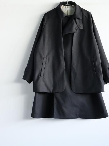 「seiyakou」 一年で一番長く闇に包まれる日の晩 暖かい金色の光に包まれた部屋で楽しそうにしている家族の姿を ある夫婦は窓の外から眺めながら町中を歩いていました そして今夜自分の生徒たちの活躍と健闘を願って 彼ら夫婦は人里離れた雪の世界にポツンと建つ 大きな一軒家で学校を営んでいました 孤児を見つけては自分たちの学校に招き入れ 愛情を持って育てました そして勉強の他に ソリの乗り方 トナカイの飼育の仕方 おもちゃの作り方 煙突への登り方なども教えてあげるのでした 立派に育った彼らの生徒は 卒業後は冬の夜空を舞い 一年で一番長く闇に包まれる時期に 光と彩りをもたらそうという人々の願いと共に 世界中の子供たちに夢を与える仕事をするのでした -------------- 上記のストーリーや登場人物をイメージし 細部まで丁寧に創り込まれた ASEEDONCLOUDのインバネスコート 天気や気候に合わせて着る 礼服、祭服、雨具の役割を担っているコートで ケープに袖がついたインバネスコートの 変形アウターです 素材は学校の冬用制服でよく使用される 温かみがあってシワの付きづらい ウールポリエステルで 実際に制服用として作成されていた生地 その上から 染料メーカーが開発した 生地加工用の墨汁をコーティングして 加工後に1度生地洗いを行っているので 落ち感があり 程よくフェード感があるのが特徴です 既に生地に灰が染み込んでいるので 学生達は灰で汚れやすい 煙突内や周りで作業していても 汚れを気にしなくて良い そんなイメージと重なる素材です また内側は柔らかいコットンを用いた総裏で 袖裏はキュプラが施されています デザインは長めのジレに 袖付きのケープがついたようなデザインで 少し大きめな作りになっているので 中にたくさん着込めたり ケープ側のポケットは ハンドウォーマーになっていたり 内側(ボディー)についているポケットは プレゼントをしまえるような ならではなディティールです また首元には付属された スロートラッチにより 防風性を高められるような トレンチの仕様も施されていたりと 丁寧に作り込まれています インナーのボリュームを気にせず羽織れたり ワイドパンツやスカートにも バランス良く合わせられたりするので 悩まず手に取ってしまいそうな 作品的コートかと No.252102 SIZE SPEC (cm) SIZE S 身幅63.0 着丈91.0 裄丈79.0 ※1 サイズ計測の多少の誤差はご了承下さいませ ※2 160cm の女性(着用画像)で size S を着用 FABRIC Wool 75% Polyester 25% BODY LINING Cotton 100% SLEEVE LINING Cupro 100% made in Japan ![]() ![]() ![]() ![]() ![]() ![]() ![]() ![]() ![]() ![]() ![]() ![]() ![]() ![]() ![]() ![]() ![]() 実物の色合いと異なる場合がございますので 何卒ご了承下さいませ 無断での複写・転載はご遠慮くださいませ ![]() ※ サイズ計測の多少の誤差はご了承下さいませ ![]() ![]()