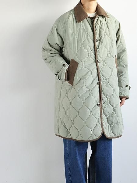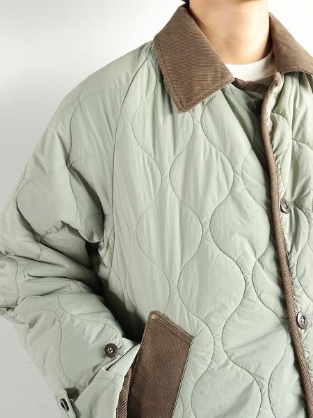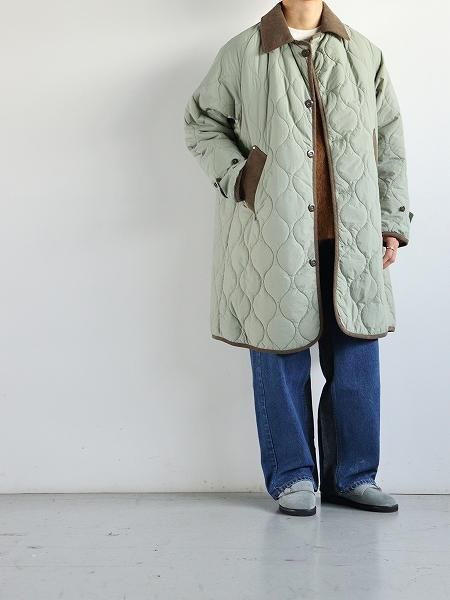 「ARMY TWILL」 1940年代にアメリカで誕生 ミリタリーウエアが ファッションとして普及し始めた頃の先駆けで 活動を終えてから現在では 希少なヴィンテージとなっている程です 2020年にはアメリカやヨーロッパ諸国の 様々なヴィンテージのディティールをモチーフに オリジナルの生地や独自のシルエットで 現代的に昇華させたリプロダクトレーベルとして 新たにスタートされています そんな銘柄より届いたのは Quilting Field Coat アメリカ40年代の レインコートのディティールを 現代のシルエットに落とし込んだコートで ナイロンとコーデュロイのコンビが雰囲気良い容姿です 素材はポリエステルで しなやかさとハリを備えたような 柔らかな質感だったり 中綿にはTHERMOLITEを用いた ひょうたんキルト型のライトキルト素材を使用し 軽量ながらしっかりと暖かい着心地です 襟元は大きめで ボタンの開け閉めで表情が変わったり ハンドウォーマー的なポケットや 実用的なディティールが再現されています また袖はラグランなので インナーを重ね着してもストレスなく 機能性とデザイン性を兼ね備えた キルティングコートです リアルな佇まいでありながら 現代の利便性にもフィットしたような ならではなアイテムです SIZE SPEC (cm) SIZE S 身幅69.0 着丈97.0 裄丈85.0 SIZE M 身幅71.0 着丈99.0 裄丈87.0 SIZE L 身幅73.0 着丈101.0 裄丈89.0 ※1 サイズ計測の多少の誤差はご了承下さいませ ※2 165cm 52kgの男性で size S を着用 ※3 170cm 60kgの男性(着用画像)で size S または size M を着用 (※着用画像は size M を着用しています) ※4 174cm 68kgの男性で size M または size L を着用 ※5 180cm 70kgの男性で size L を着用 ※6 160cm の女性で size S を着用 表地 : Nylon 100% 裏地 : Nylon 100% 中綿 : Polyester 100% ![]() ![]() ![]() ![]() ![]() ![]() ![]() ![]() ![]() ![]() ![]() 実物の色合いと異なる場合がございますので 何卒ご了承下さいませ 無断での複写・転載はご遠慮くださいませ ![]() ※ サイズ計測の多少の誤差はご了承下さいませ ![]() ![]()