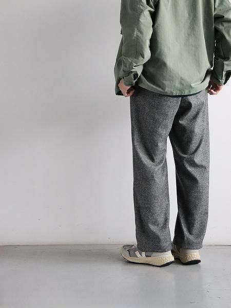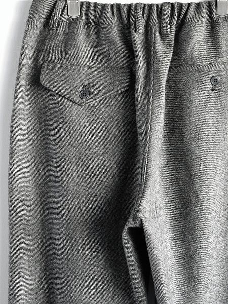 「PERS PROJECTS」 PERSPECTIVE 「見通し 遠近法 完成予想図」 PERSONALITY 「個性」 それぞれの意味合いを掛け合わせて表現され 着る人の 思考 感性 生活様式 を際立たせ 個性を拡張するプロジェクト 上質な素材感と 無駄なものをすべてそぎ落とした ミニマルなデザインで 着るたびに奥行きや深さを感じられる そんな服を創り出していく銘柄です 今回ご紹介するのは 砕けすぎず程よくヌケ感もある PAUL BEZ TROUSERS "cashmere" ファブリックは リサイクルウールにカシミアをブレンドした ストレッチカシミアツイル カシミヤをブレンドすることで しなやかな表情と肌触りに仕上がっています タック仕様なしのスッキリとしたフロントで バックスタイルは ゴム仕様でありながら 腰回りのボリュームは抑えた 雰囲気良いフォルムに纏まっています シルエットは 裾にかけて綺麗に落とした 立体的なストレートです リラックスな穿き心地ですが 綺麗な印象に纏まっているので ラフなトップスにもバランス良いようです 25FW-23092CAS SIZE SPEC (cm) SIZE 2 ウエスト78.0~88.0 わたり幅31.0 裾幅23.0 股上32.0 股下73.0 総丈105.0 SIZE 3 ウエスト80.0~90.0 わたり幅33.0 裾幅25.0 股上34.0 股下75.0 総丈107.0 ※1 サイズ計測の多少の誤差はご了承下さいませ ※2 165cm 52kgの男性で size 2 を着用 ※3 170cm 60kgの男性(着用画像)でsize 2 または size 3 を着用 (※着用画像は size 3 を着用しています) ※4 174cm 68kgの男性で size 3 を着用 ※5 180cm 70kgの男性で size 3 を着用 Cashmere 9% Wool 62% Polyester 26% Nylon 2% Polyurethane 1% made in Japan ![]() ![]() ![]() ![]() ![]() ![]() ![]() ![]() ![]() 実物の色合いと異なる場合がございますので 何卒ご了承下さいませ 無断での複写・転載はご遠慮くださいませ ![]() ※ サイズ計測の多少の誤差はご了承下さいませ ![]() ![]()