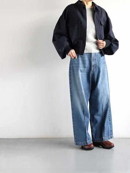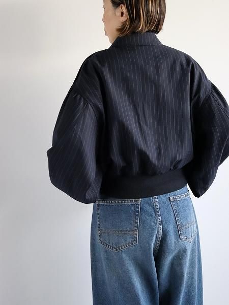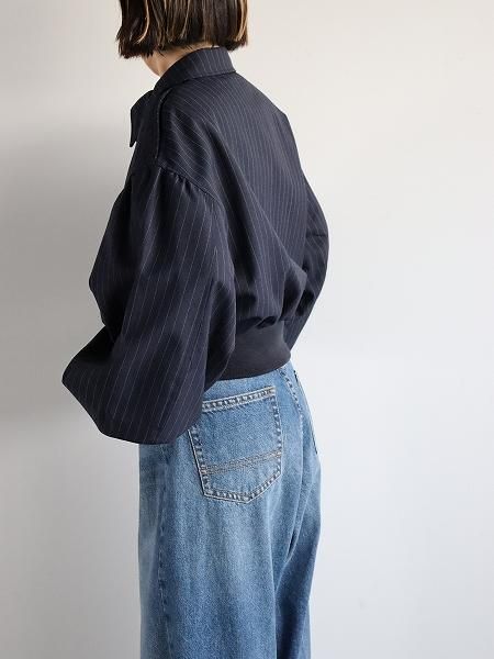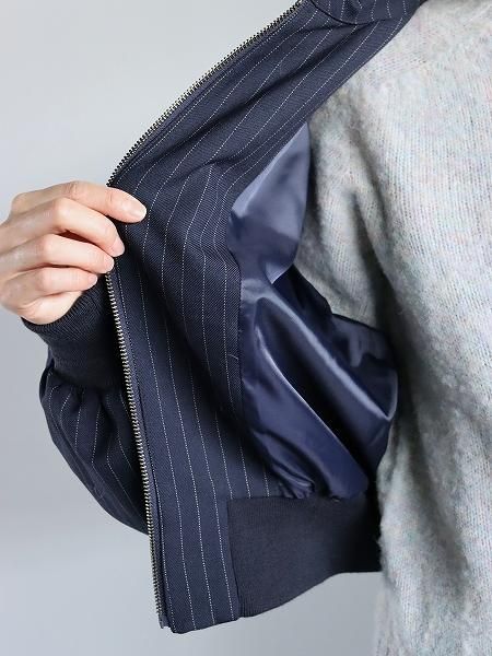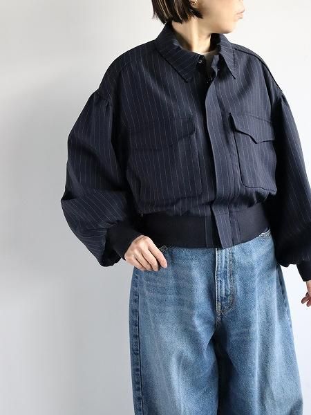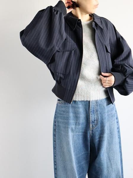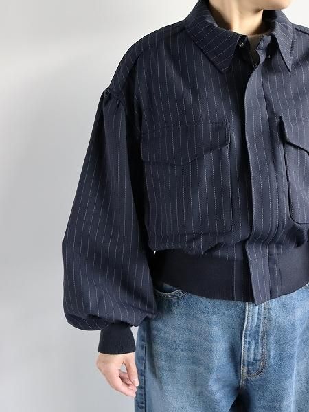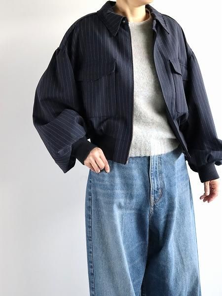 「Rhodolirion」 ロドリリオン 歴史あるファッションカルチャーへの敬意を持ち 自由なクリエーションにて 普遍的に愛される服作りを心がけています 奥行きのあるデザインや素材使いで 独自の世界観を丁寧に表現されています そして今回ご紹介するのは A-2 Type Jacket - Gabardine フライトジャケットの代名詞敵存在でもある Type A-2のディテールを RHODOLIRIONのフィルターを通して モディファイされたジャケット 生地は環境にも動物にもやさしい素材の リサイクルポリエステルと ノンミュールウールの糸を使用した 綺麗なギャバジン生地 高密度で上品な光沢感と 適度なハリ感があるので ふっくらとしたシルエットが 整いやすい素材感です ディティールは スナップダウン形式の襟や肩章だったり 前比翼はファスナージップで ドットボタン式のフラップポケットは 横からのポケットも施された2重構造だったり 裾や袖口はゴム編みで 大きく落ちるドロップショルダーや ギャザーたっぷりのバルーン袖が施されていたりと 従来の雰囲気や容姿を残しつつ 女性らしいニュアンスも組み込んだ 絶妙な容姿に仕上げられています 本格的なミリタリーディティールと ネイビーのストライプが綺麗な印象にも映る ロドリリオンならではなジャケットです #RV1010 SIZE SPEC (cm) SIZE 1 身幅59.0 着丈55.0 裄丈85.0 ※1 サイズ計測の多少の誤差はご了承下さいませ ※2 160cmの女性(着用画像)で SIZE 1 を着用 BODY : WOOL 50% POLYESTER 50% LINING : POLYESTER 100% RIB : ACRYLIC 60% WOOL 25% NYLON 13% POLYURETHANE 2% ![]() ![]() ![]() ![]() ![]() ![]() ![]() ![]() ![]() ![]() ![]() ![]() ![]() 実物の色合いと異なる場合がございますので 何卒ご了承下さいませ 無断での複写・転載はご遠慮くださいませ ![]() ※ サイズ計測の多少の誤差はご了承下さいませ ![]() ![]()