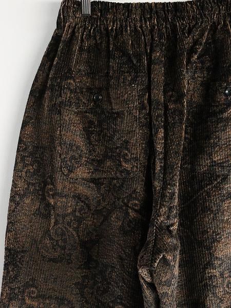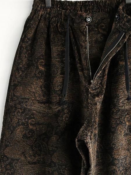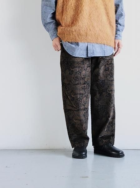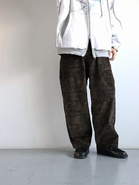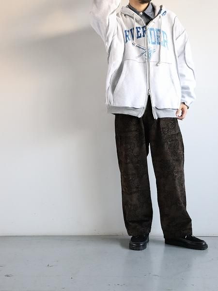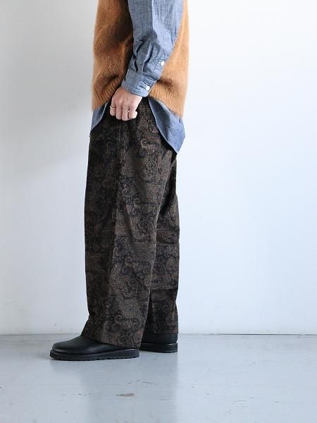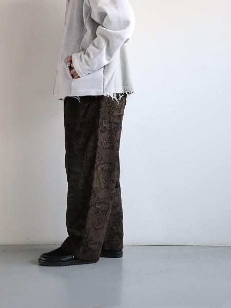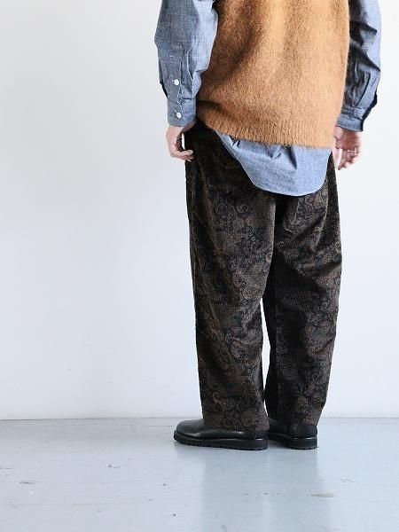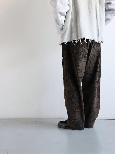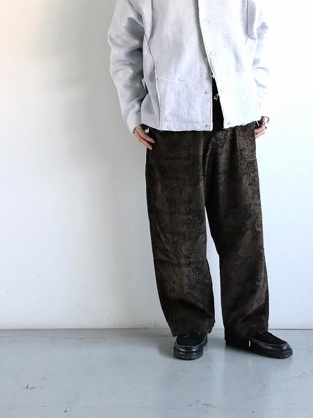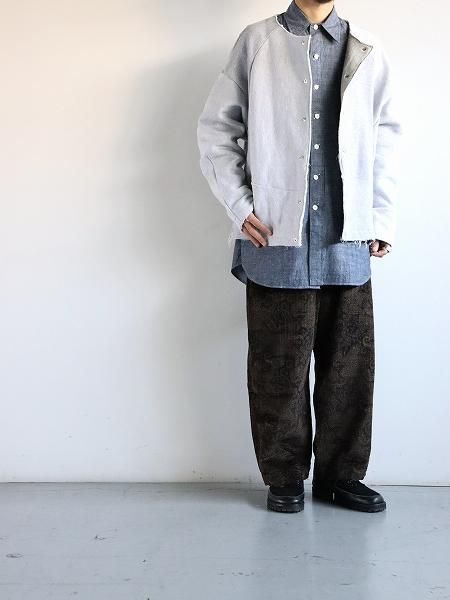 「SOWBOW」 - 蒼氓 - 単に着心地の良い日常着ということではなく 「着流し」の感覚として 着ている人と服の間で生まれる 空気感 雰囲気を大切にすることをコンセプトとしています ブランドネームの SOWBOW<蒼氓>には 人民や民といった意味があり 「特別な誰かの為のものではなく 人々の日常に寄り添うものであってほしい」 という想いから 主に九州地方を生産背景とし その土地で古くから培われてきた伝統技術(生地・染め・縫製)を用いて 日本の文化 環境 歴史に適したものを提案しています そんな SOWBOWから 今回ご紹介するのは SOWBOW EZ PANTS (WIDE) PAISLEY CORD / BLACK 素材はコットン×レーヨンのペイズリー柄の プリントコーデュロイ生地で デッドストックで見つかったものを使用されています 上品な光沢感があり なめらかなドレープ感が綺麗な生地で ペイズリー柄は存在感がありつつも どこか品のある落ち着いた表情に映っています ブラックベースですが フルレングスでも重たい印象にならず 程よいリラックス感が絶妙です シルエットはワイドで ジャストレングスなので 綺麗なフォルムに纏まっています ウエストはイージーパンツ仕様ですが 左側にループが一つ施されており フックに引っ掛けておいたり キーチェーンも使用できます スタイリングも幅広く使えますし 実はこういったパンツが 長いシーズン重宝したりします SBPT02W-25 SIZE SPEC (cm) SIZE 1 ウエスト66.0~94.0 わたり幅39.0 裾幅23.5 股上37.0 股下62.0 総丈95.0 SIZE 2 ウエスト70.0~100.0 わたり幅41.0 裾幅26.0 股上40.0 股下66.0 総丈100.0 ※1 サイズ計測の多少の誤差はご了承下さいませ ※2 165cm 52kgの男性(着用画像)で size 1 を着用 ※3 170cm 60kgの男性(着用画像)で size 1 または size 2 を着用 (※着用画像は size 2 を着用) ※4 174cm 68kgの男性で size 2 を着用 ※5 180cm 70kgの男性で size 2 を着用 Cotton 67% Rayon 33% made in Japan ![]() ![]() ![]() ※ 165cm 52kgの男性で size 1 を着用 ![]() ※ 165cm 52kgの男性で size 1 を着用 ![]() ※ 165cm 52kgの男性で size 1 を着用 ![]() ※ 165cm 52kgの男性で size 1 を着用 ![]() ※ 170cm 60kgの男性で size 1 または size 2 を着用 (※着用画像は size 2 を着用しています) ![]() ※ 170cm 60kgの男性で size 1 または size 2 を着用 (※着用画像は size 2 を着用しています) ![]() ※ 170cm 60kgの男性で size 1 または size 2 を着用 (※着用画像は size 2 を着用しています) ![]() ![]() ![]() 実物の色合いと異なる場合がございますので 何卒ご了承下さいませ 無断での複写・転載はご遠慮くださいませ ![]() ※ サイズ計測の多少の誤差はご了承下さいませ ![]() ![]()
