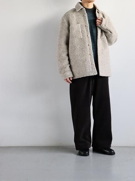 wax london (ワックスロンドン) 世界中の偉才な職人技と英国の伝統が交わり 日常を豊かにする 個性的でタイムレスな服を生み出しながら 環境にも配慮した 持続可能な素材や製造プロセスを取り入れることで 地球との共存を大切にした服作りを実践しています 2015年にロンドンを拠点にスタートし スポーツ ワークウェア ミュージック コミュニティ からインスパイアされ クラシックな型をベースに 新しさと懐かしさがミックスされたような モノ作りをされています そんなブランドからセレクトしたのは 画期的な生地やテクスチャーにより 利便性あるアイテムに仕上げられた MOUNT OVERSHIRT この度のデザインは オーバーシャツのようであり アウターの機能性も備わった リバーシブル仕様に仕上げられています 素材は凸凹とした毛足のように映る ナチュラルなウールのブークレー素材と キルティングされたポリエステルの 裏地が施されています フロントのボタンは ブランドオリジナルの刻印が入った 天然の椰子から作られた 環境にやさしい ココナッツボタンが施されていたり 素材に馴染むような 両胸のパッチポケットも特徴的ですが キルティングを表にすると ポケット位置が異なり よりアウターな印象に纏まります 異なる素材のリバーシブルですが どちらもメインな素材感なので インナーに合わせてお楽しみください SIZE SPEC (cm) SIZE S 身幅57.0 肩幅48.0 着丈73.0 袖丈60.0 SIZE M 身幅59.0 肩幅50.0 着丈75.0 袖丈62.0 SIZE L 身幅62.0 肩幅52.0 着丈77.0 袖丈64.0 SIZE XL 身幅65.0 肩幅54.0 着丈79.0 袖丈66.0 ※1 サイズ計測の多少の誤差はご了承下さいませ ※2 165cm 52kgの男性で size S または size M を着用 ※3 170cm 60kgの男性(着用画像)で size M または L を着用 ※4 174cm 68kgの男性で size L または XL を着用 ※5 180cm 70kgの男性で size XL を着用 ※6 160cm の女性(着用画像)で size S を着用しています Wool 53% Polyester 47% ![]() ![]() ![]() ![]() ![]() ![]() ![]() ![]() ![]() ![]() ![]() ![]() ![]() ![]() ![]() ![]() 実物の色合いと異なる場合がございますので 何卒ご了承下さいませ 無断での複写・転載はご遠慮くださいませ ![]() ※ サイズ計測の多少の誤差はご了承下さいませ ![]() ![]()